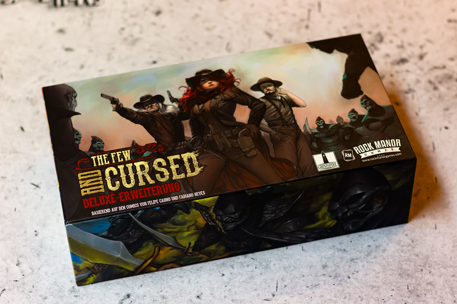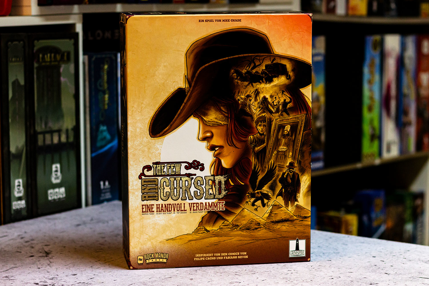 Ihr wolltet schon immer einmal in einem düsteren Westernsetting nicht nur Gauner und Verbrecher jagen, sondern es auch mit Dämonen aufnehmen? Dann könnte The Few and Cursed von Autor Mike Gnade und den Illustratoren Felipe Cagno und Fabiano Neves das Spiel für euch sein. Das Spiel für ein bis vier Personen ab 13 Jahren basiert auf dem gleichnamigen Comic.