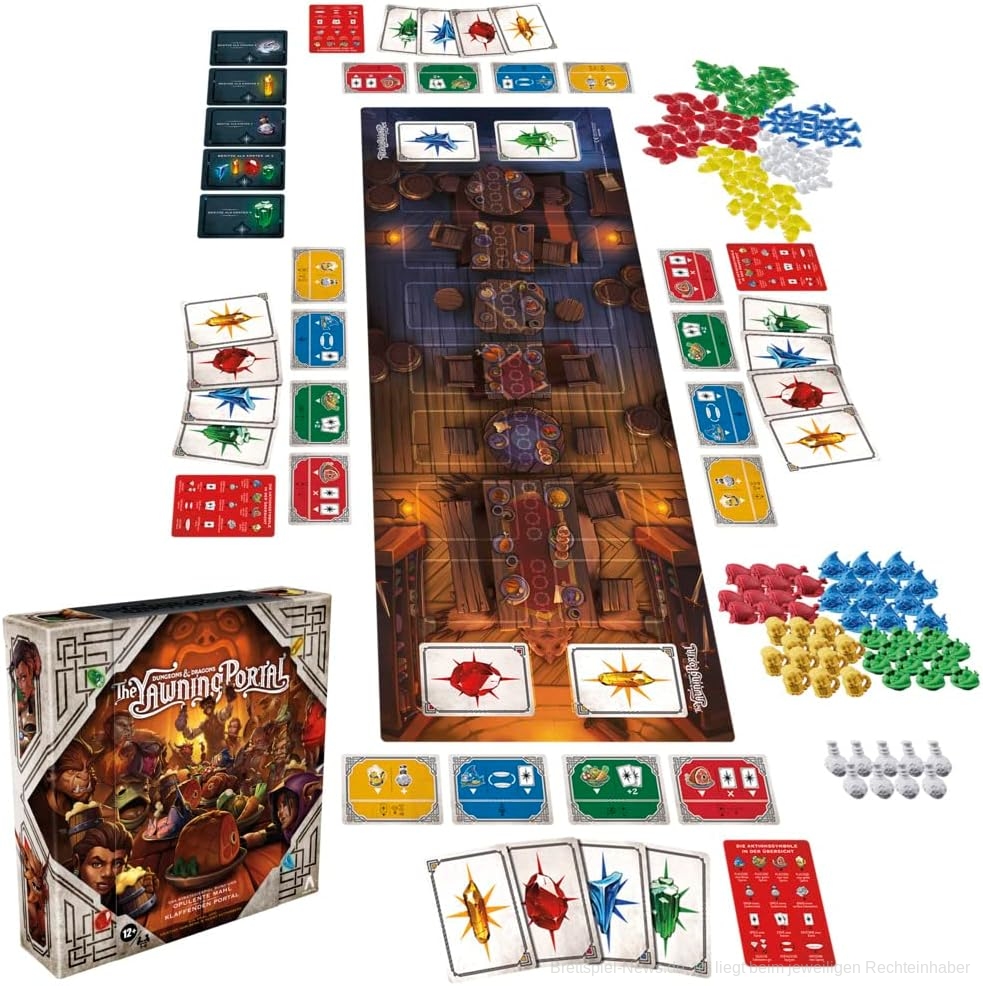 Das Spiel ist für 1 bis 4 Spieler ab 12 Jahren konzipiert und bietet sowohl D&D-Experten als auch Einsteigern eine spannende und abwechslungsreiche Spielerfahrung. Auf den Heldenkarten sind verschiedene Bestellungen abgebildet, die den Spielern Hinweise darauf geben, welche Speisen und Getränke sie den Gästen servieren müssen. Jede erfolgreich erfüllte Bestellung bringt farbige Edelsteine und Punkte ein. Wer die komplette Bestellung eines Helden erfüllt, erhält zusätzlich einen attraktiven Volltreffer-Bonus.