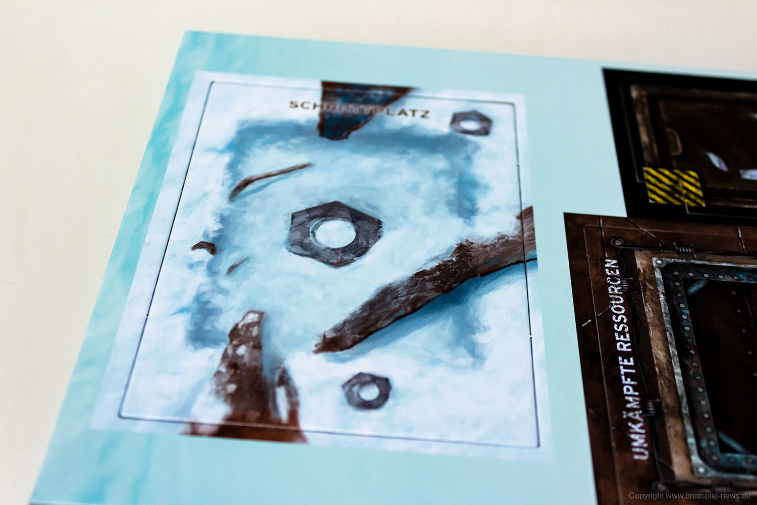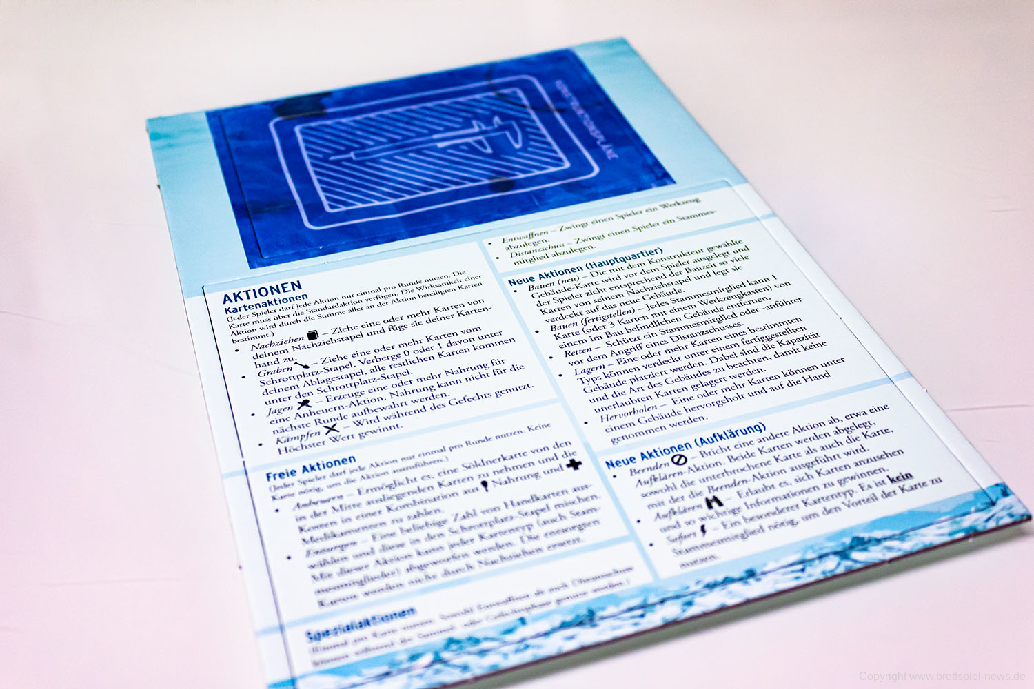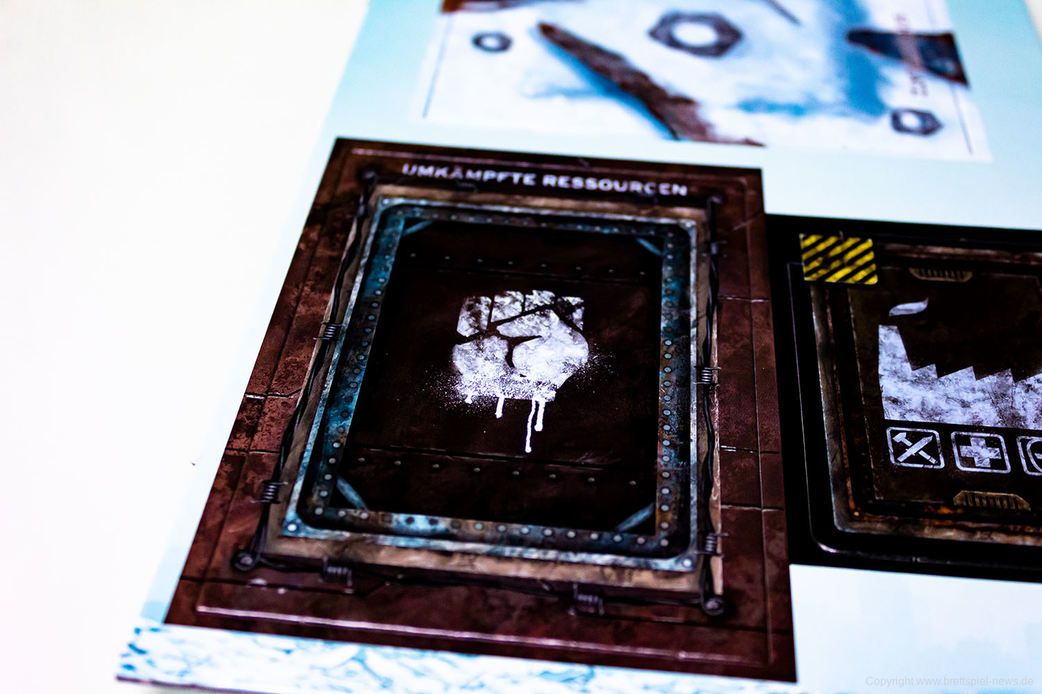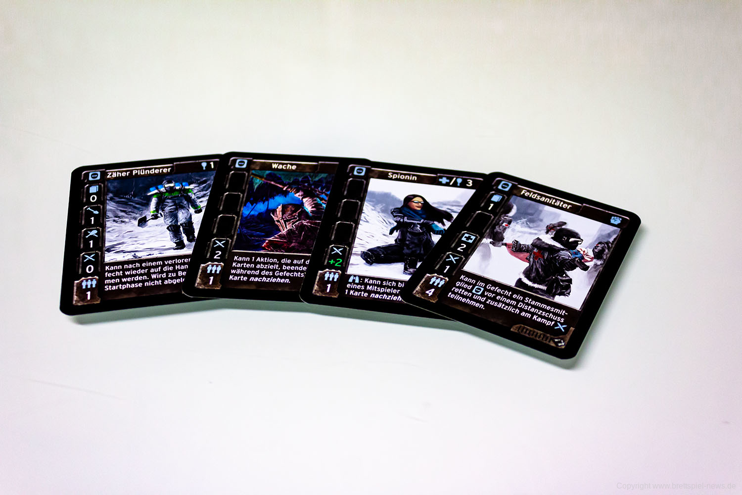 Erweiterung des Hauptquartiers: Die erste Erweiterung für Arctic Scavengers führt die Idee eines Basislagers oder Hauptquartiers für jeden Stamm ein. Dieses Basislager besteht aus einem Stammesführer (komplett mit Spezialfähigkeiten) und dem Potenzial, Gebäude zu errichten, die während des Spiels strategisch genutzt werden können. Zusätzlich führt das Spiel alternative Siegespfade, neue Söldner, neue Werkzeuge und die Erweiterung um den Stapel "Konstruktionsschemata".