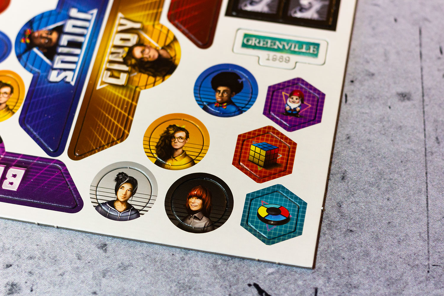 Greenville 1989 ist ein kooperatives Erzählspiel, in dem jeder Spieler eine Figur darstellt, die übernatürliche Ereignisse erlebt oder miterlebt hat. Sie müssen diese Ereignisse ihren Mitspielern beschreiben, die dann diese Figur ausfindig machen und sie retten. Diese Hauptrolle wechselt in jeder Runde, so dass jeder die Chance hat, verloren oder gefunden zu werden - und Sie wollen gefunden werden, sonst wird die Gruppe näher an die Leere gezogen, die die Stadt verschlingt und Sie alle zu verzehren droht.