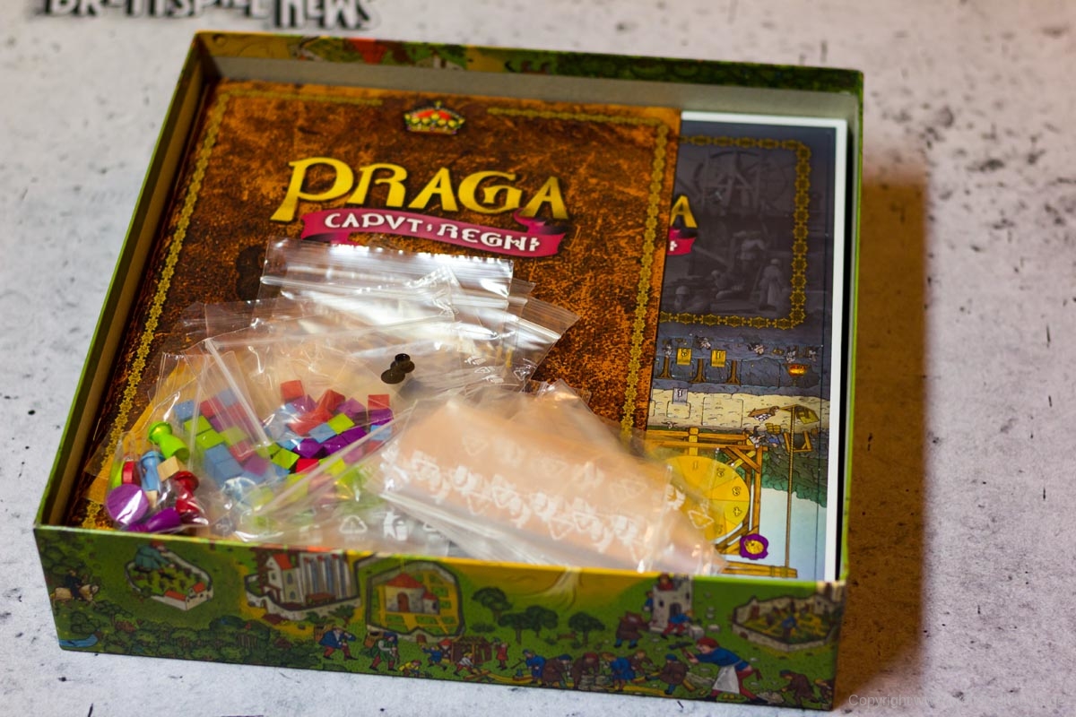 In Praga Caput Regni schlüpfen die Spieler in die Rolle wohlhabender Bürger, die verschiedene Bauprojekte im mittelalterlichen Prag organisieren. Indem sie ihren Reichtum vergrößern und sich am Bau beteiligen, erlangen sie die Gunst des Königs. Die Spieler wählen auf dem Spielbrett aus sechs Aktionen - dem "Aktionskran" - die immer zur Verfügung stehen, die aber mit einer ständig wechselnden Palette von Kosten und Nutzen gewichtet sind. Mit Hilfe dieser Aktionen können Sie Ihre Ressourcen erhöhen, die Stärke der von Ihnen gewählten Aktionen verbessern und die "Neue Prager Stadt", die Karlsbrücke oder Stadtmauern bauen. Möglicherweise können Sie zusätzliche Aktionen gewinnen oder sich sogar am Bau der St.-Veits-Kathedrale beteiligen.