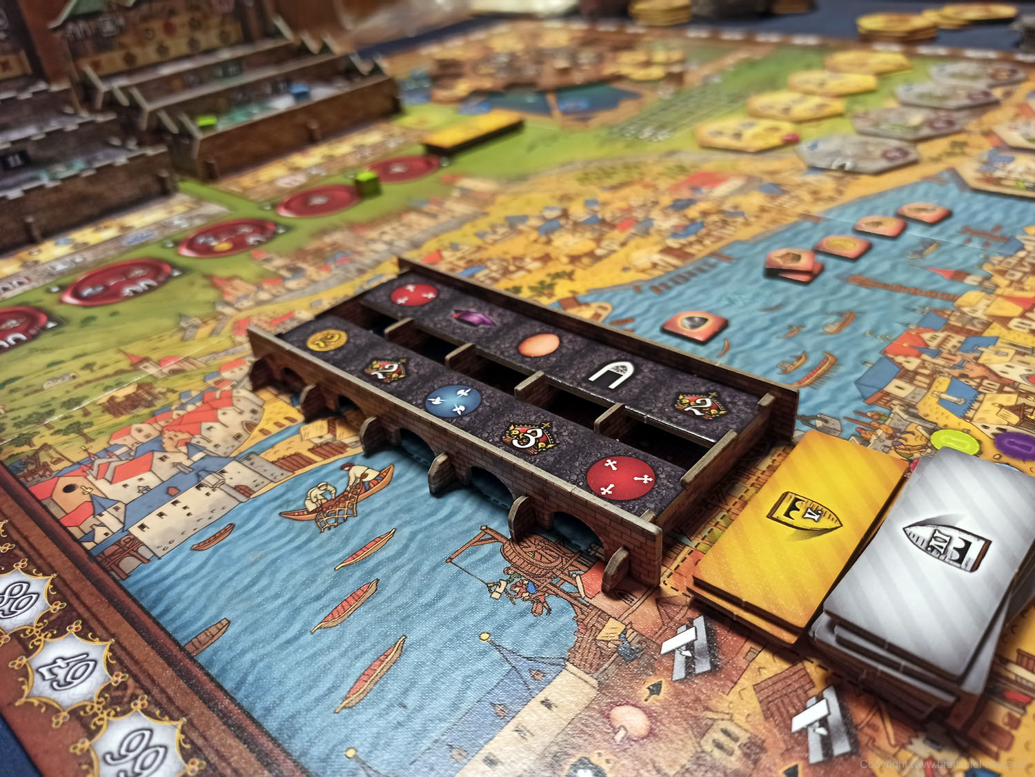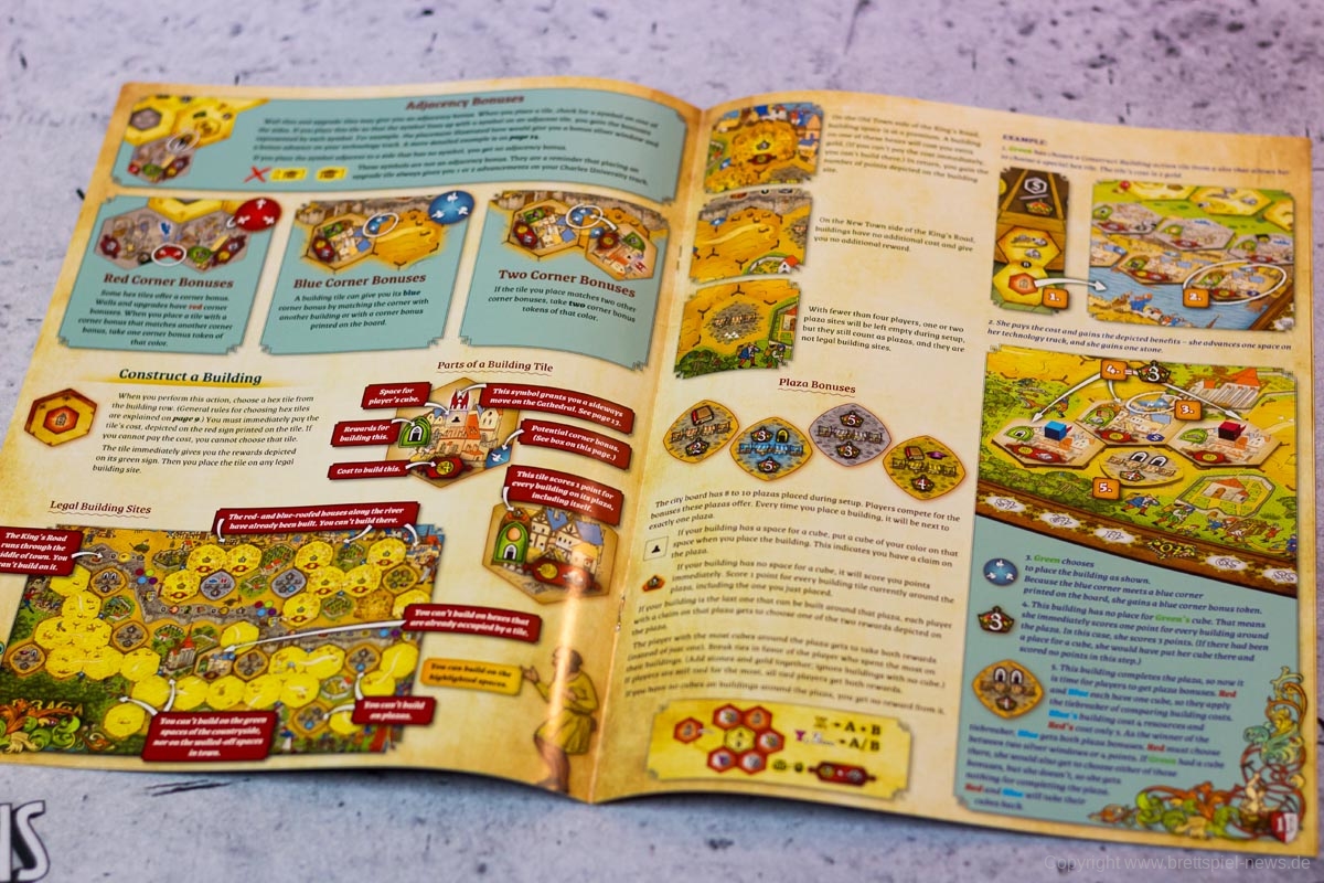 Clevere Spieler werden Synergien zwischen sorgfältig getimten Aktionen und den Belohnungen aus dem Bau von Bürgerprojekten entdecken, da alle Mechanismen ineinander greifen. Am Ende des Spiels gewinnt der Spieler, der König Karl am meisten beeindruckt hat.
