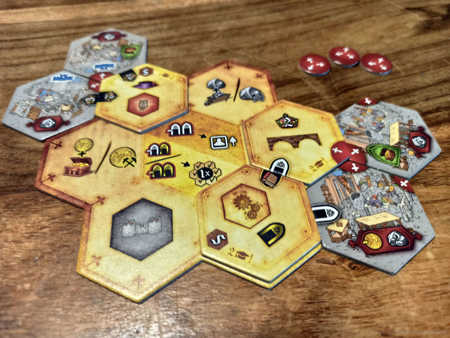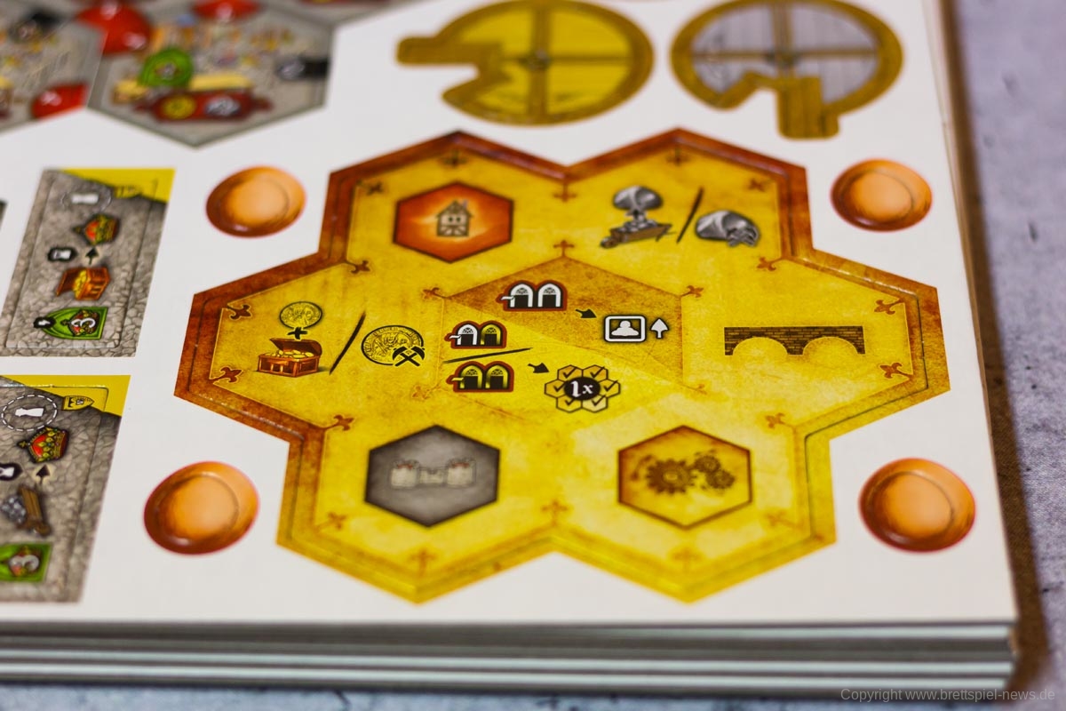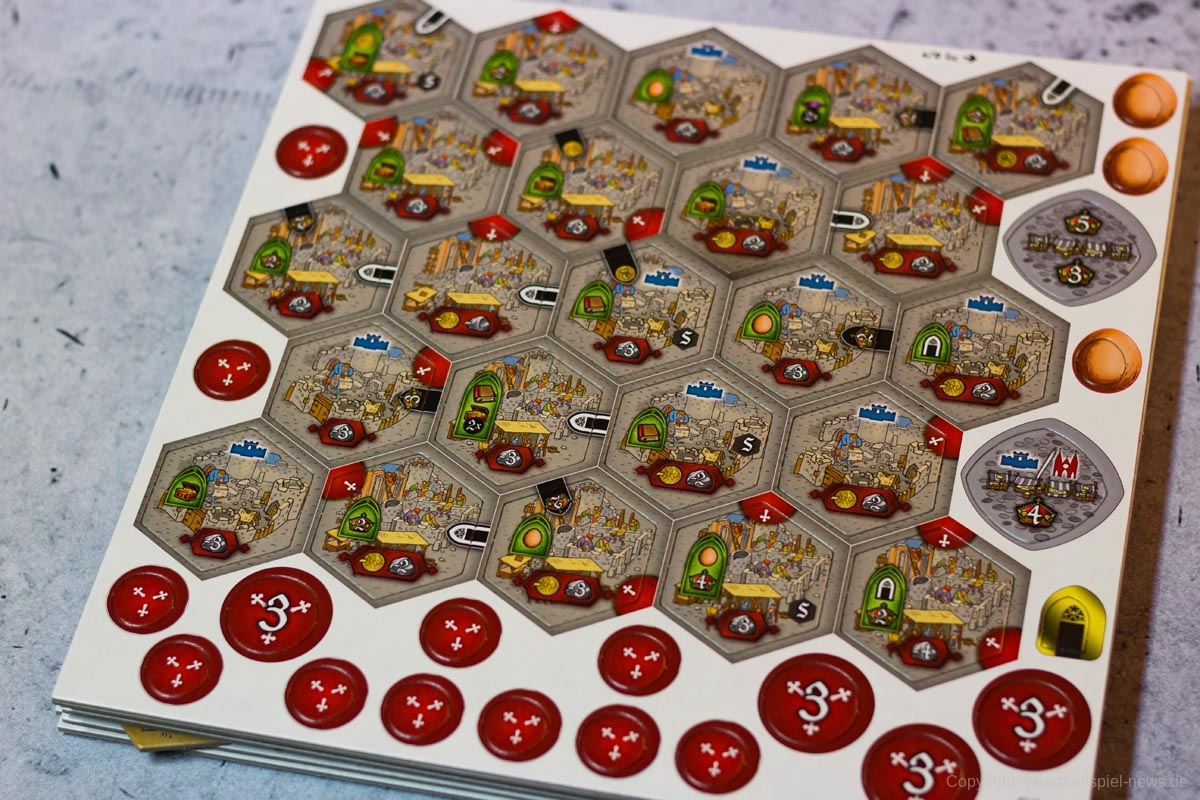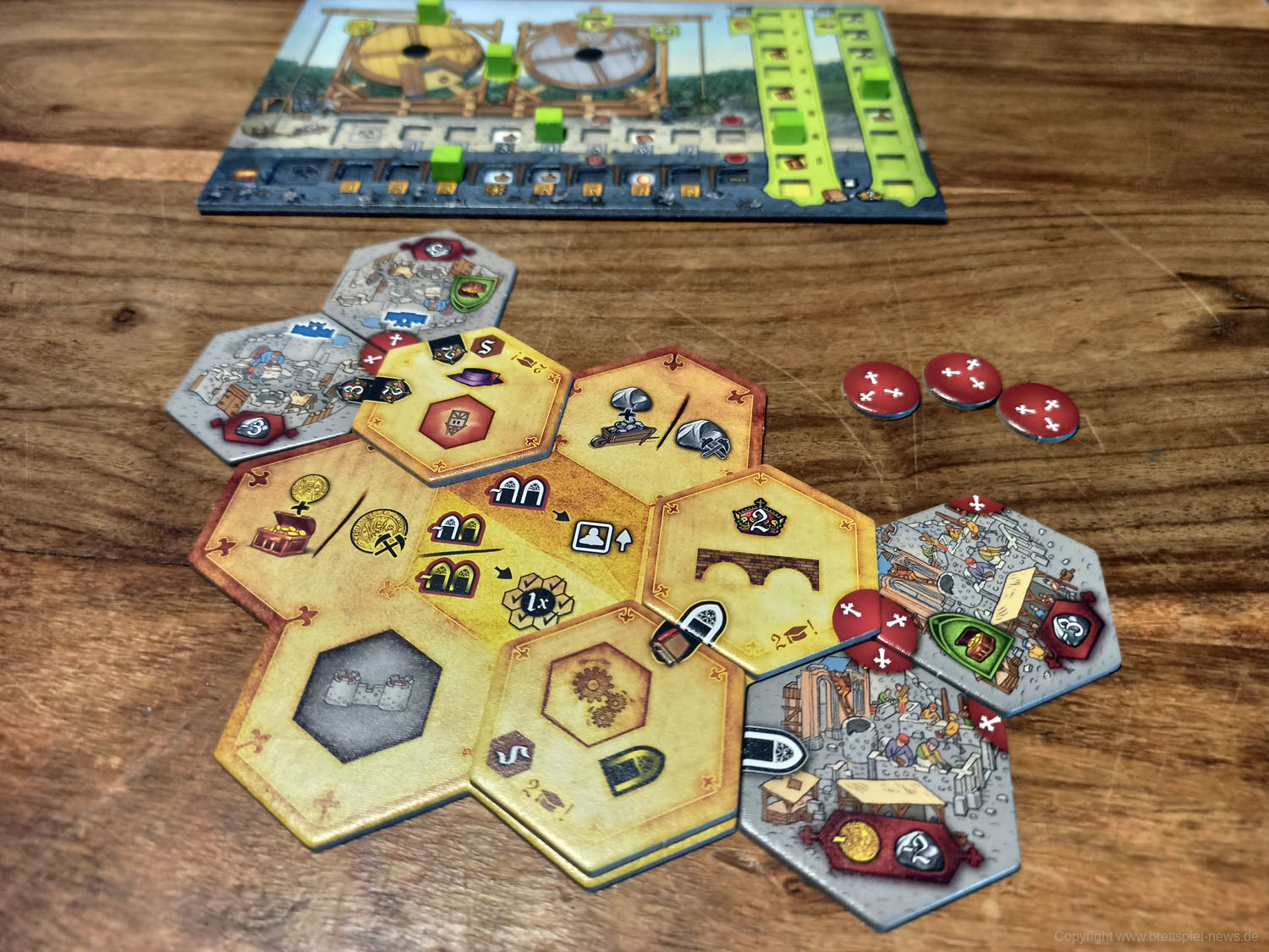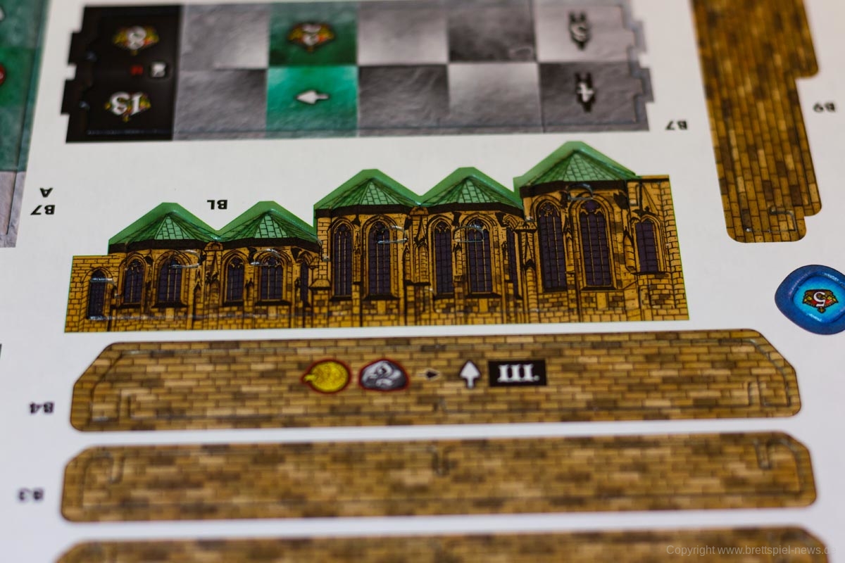 Das Spielmaterial besteht fast aussschließlich aus Stanzmatten mit Markern und Spielelementen die den Eindruck schaffen ein komplexes ansspruchsvolles Spiel zu erhalten. Ob dem so ist muss sich im Test noch zeigen.