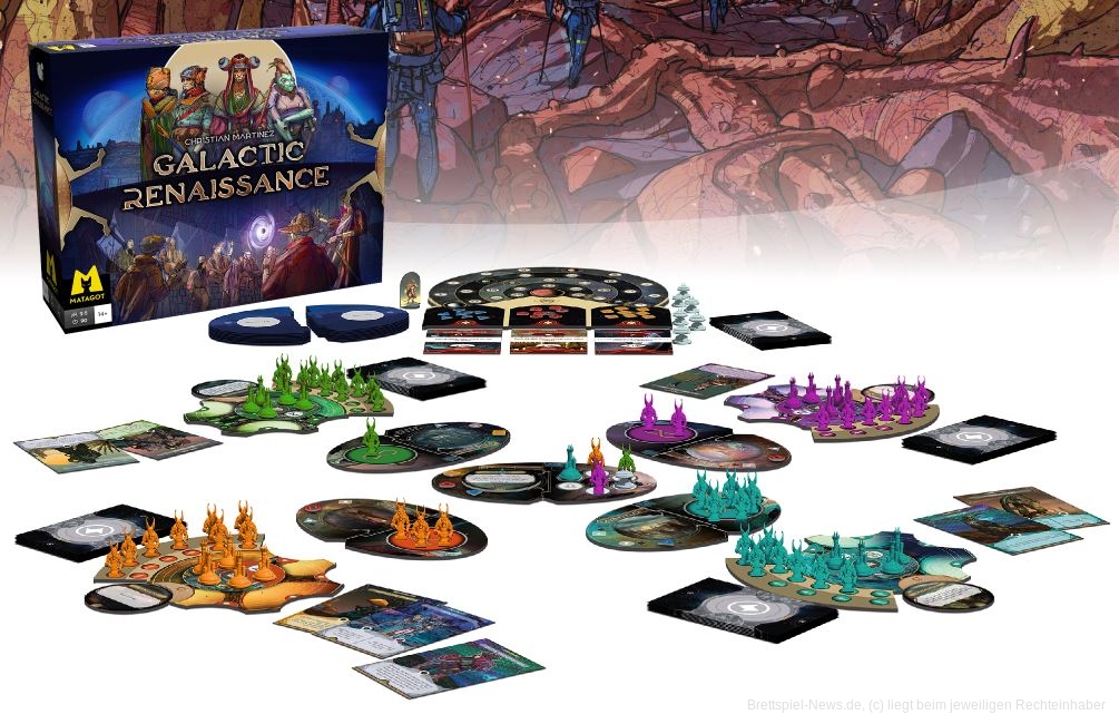 Der französische Spieleverlag Matagot hat am 21. März 2023 ein neues Kickstarter-Projekt für das Spiel „Galactic Renaissance“ gestartet. Fast sieben Jahre nach dem Area-Control-(Geheim)tipp „Inis“ bildet „Galactic Renaissance“ den nun zweiten Teil der „Political Trilogy“-Reihe von Autor Christian Martinez. „Galactic Renaissance“ ist ein Weltraum-Explorationsspiel für 2-4 Personen und wurde von Tano Bonfanti illustriert. Eine Partie wird voraussichtlich 90 Minuten dauern.