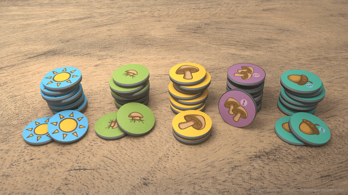 - optional: schreitet für 3 Sonnenplättchen auf der gemeinsamen Jahreszeit-Leiste voran. Wird dabei eine Frostlinie überquert, kann ein Set von Tierkarten in den Winterschlaf geschickt werden, um am Spielende für Punkte dafür zu erhalten.