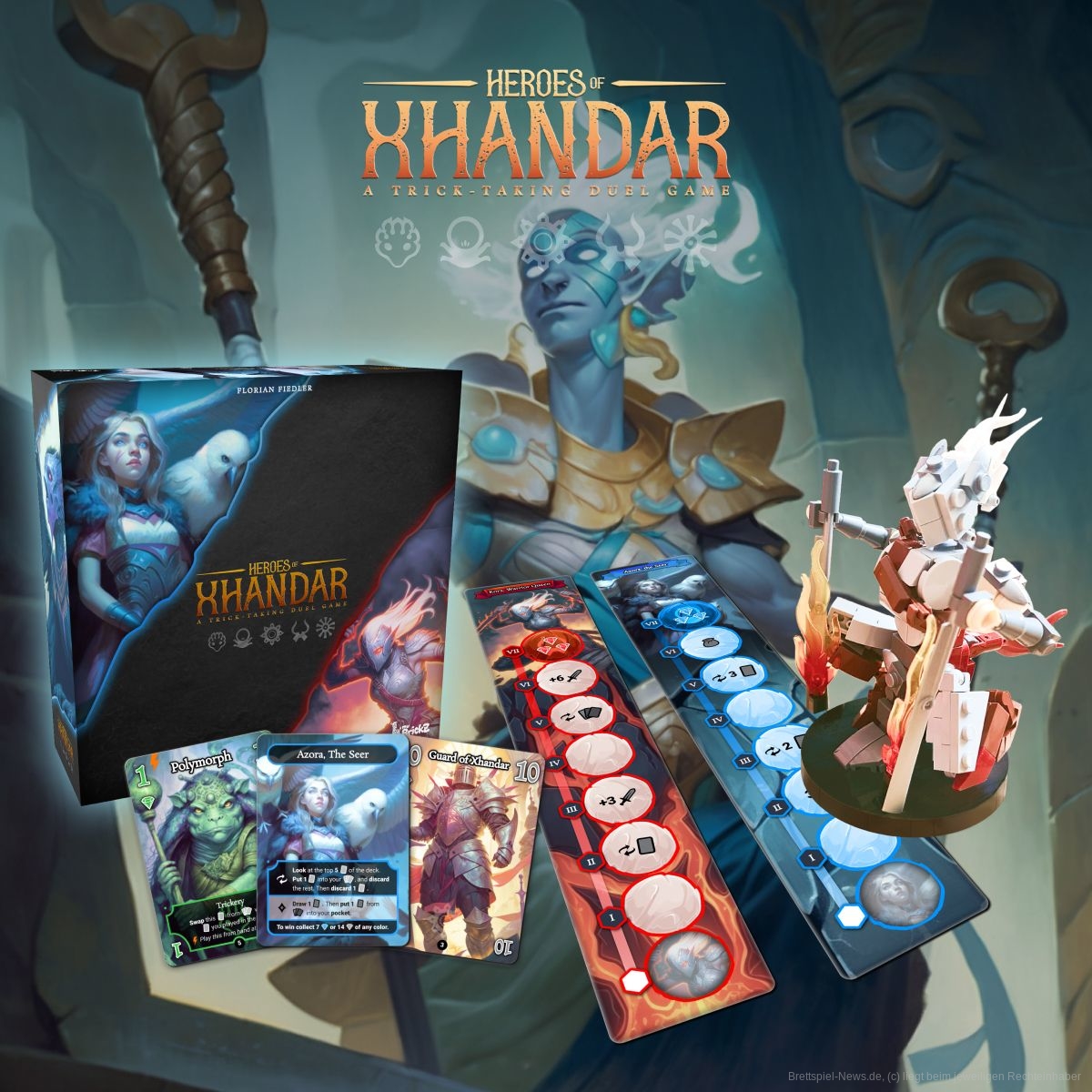 Aktuell kann „Heroes of Xhandar“ auf Kickstarter gefördert werden. In dem Stichkartenspiel von Florian Fiedler kämpfen 2-5 Personen ab 12 Jahren darum, Xhandar zu retten. Dazu stehen verschiedene Helden und Heldinnen mit asymmetrischen Kräften zur Verfügung, teilweise sogar mit Miniaturen, die vor dem Spiel noch aus Bausteinen eigenhändig zusammengebaut werden. Eine Partie selbst soll zwischen 30 und 45 Minuten dauern.