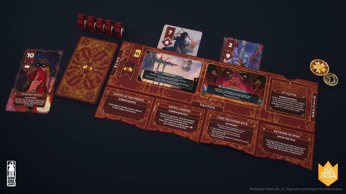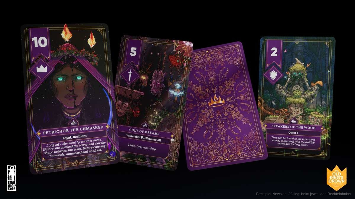 In den vergangenen Tagen gab der neue schottische Verlag Eerie Idol Games bekannt, dass ihr erstes Projekt „The Old King’s Crown“ nächsten Monat, am 24. Oktober 2023, auf Kickstarter starten wird. Dabei handelt es sich um ein politisches Fantasyspiel, das nicht zuletzt aufgrund der asymmetrischen Fraktionen und der großen Herald-Figuren an Oath von Leder Games erinnert.