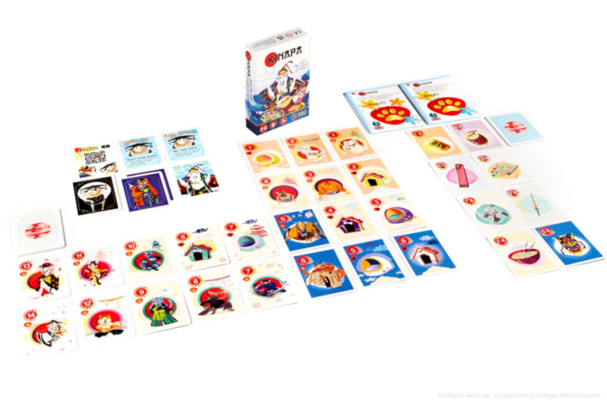 In „Kinapa“ begebt ihr euch ins Reich der aufgehenden Sonne. In jeder Runde übernimmt eine Person die Rolle des Kaisers. Als Kaiser wollt ihr eure Untertanen samt Schätze nach Hause bringen. Dabei müsst ihr aber die Täuschungen und Machenschaften der anderen durchschauen. Vielleicht sind es ehrliche Verbündete, vielleicht wollen sie aber auch den Thron für sich.