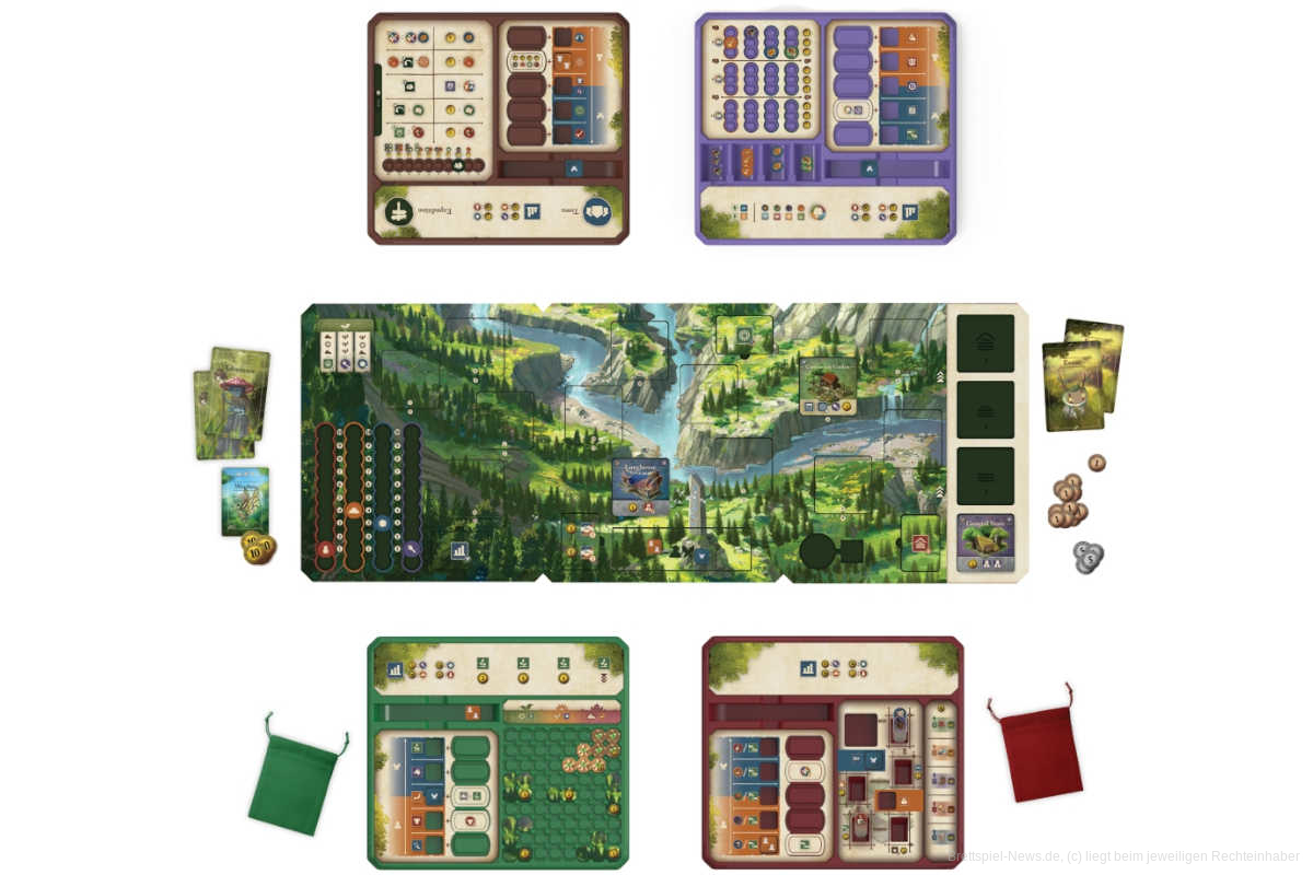 Jede Runde umfasst einen Tag. Legt in der Morgen-Phase zuerst das Wetter fest und handelt die entsprechenden Effekte ab. Zum Mittag macht ihr euch an die Arbeit – in den Dorfaktionen stürzt ihr euch ins Abenteuer, erschließt neues Land oder beschafft Ressourcen, entwickelt euer Dorf weiter oder nutzt Gebäude-Effekte. Ihr könnt euch auch Unterstützung von Waldgeistern oder Dorfleuten holen.