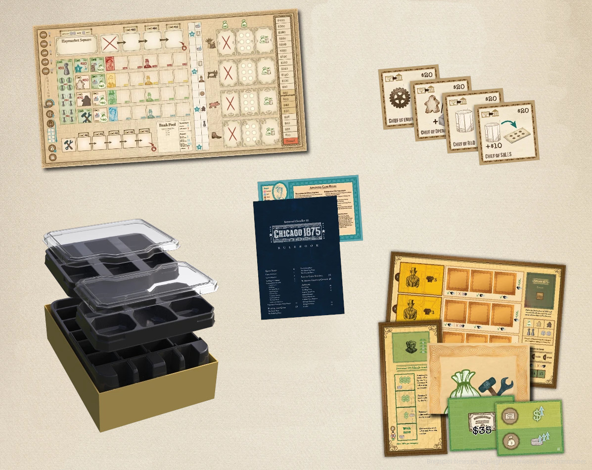 In „Chicago 1875“ schlüpfen 1-4 Spielende innerhalb von 120-180 Minuten in die Rolle von Investoren und Unternehmern und gründen ebenjene Unternehmen, handeln deren Aktien an der lokalen Börse, stellen Mitarbeitende ein, statten ihre Fabriken aus und produzieren lebenswichtige Waren, um diese an die Haushalte des Mittleren Westens zu verkaufen. Ziel ist es, so schnell wie möglich den größten Reichtum anzuhäufen und den eigenen Platz als wichtigster Bürger Chicagos zu sichern.