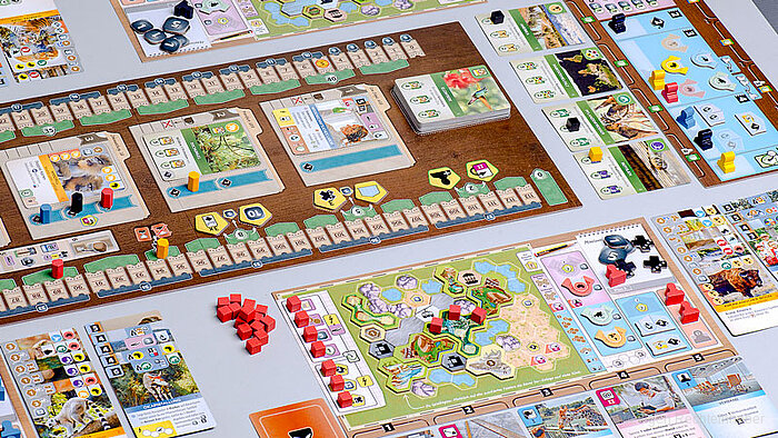 Tags: Crowdfunding, Eurogame, 1-4 Spieler, 90-150 Minuten, Tiere, Action-Selection, Natur, Gamefound
