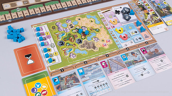 - Sponsoren: Spiele Sponsorenkarten, um deinen Zoo zu verbessern oder zusätzliches Einkommen zu generieren.