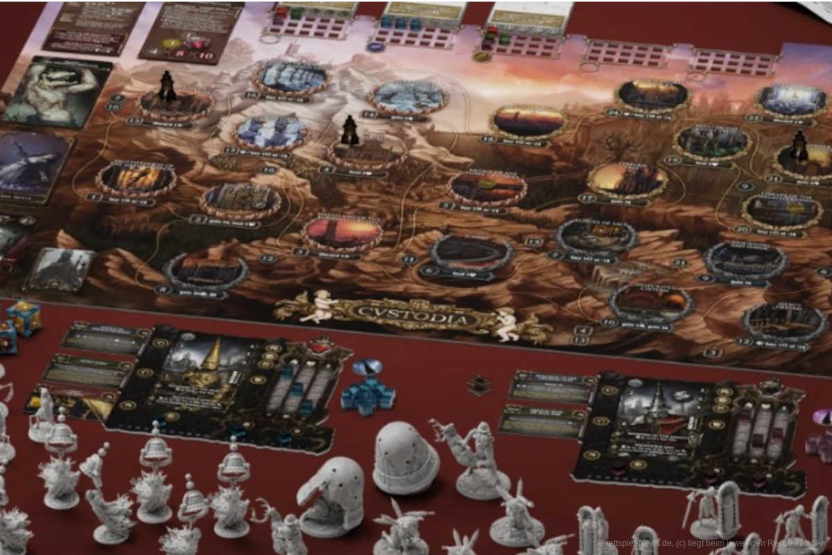 Das Spiel wird sowohl für die Büßer als auch für die Gegner hochwertige Miniaturen enthalten, die auch mit der Wash-Option geben. Auch das restliche Material scheint hochwertig zu sein: Doublelayer-Boards, gut gestaltete Karten und ein detailliertes Spielbrett, das die Welt von Cvstodia zeigt, gehören zum Basisspiel dazu.