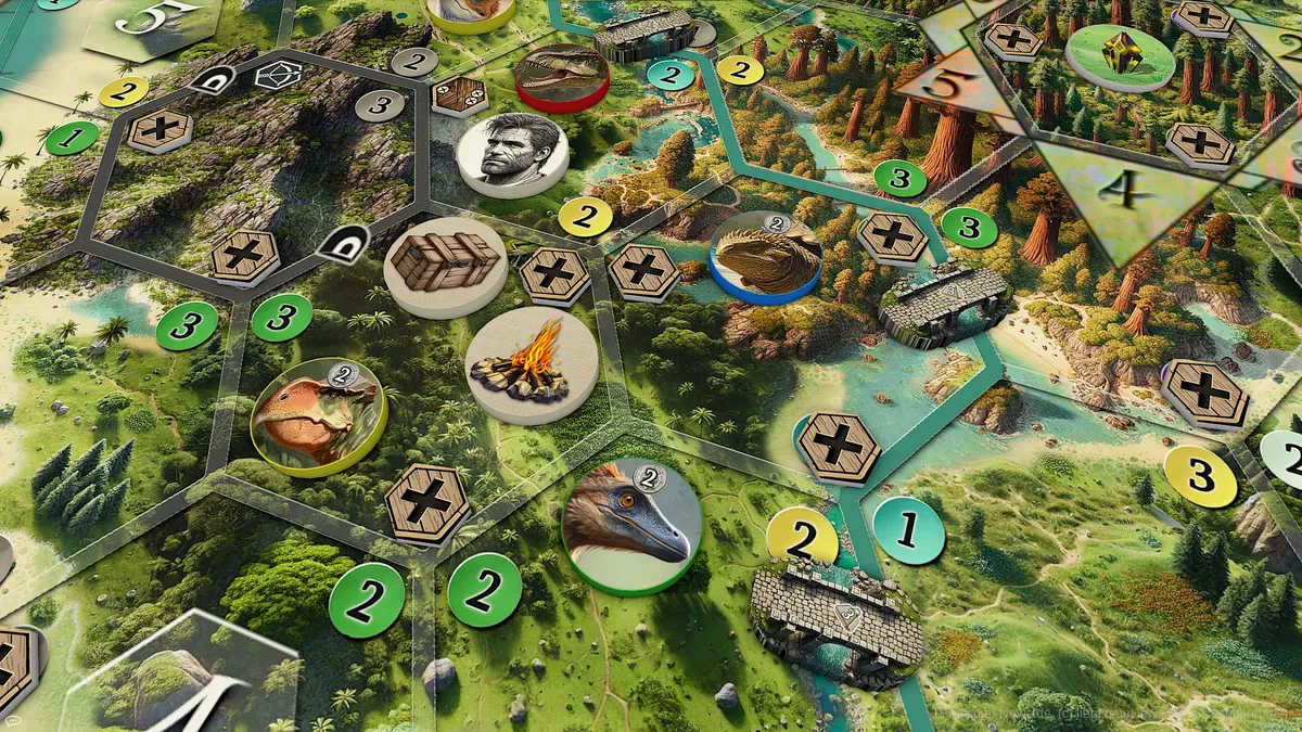 Das Spiel bietet zwei intensive Modi. Eine epische 3-Phasen-Kampagne (Survive – Prepare – Escape), in der du Ausrüstung und gezähmte Dinosaurier über mehrere Partien hinweg behältst, oder einen brutalen One-Shot-Modus für ein einzelnes, unerbittliches Survival-Erlebnis. Das innovative Material-Track-System sorgt dafür, dass jede Ressource zählt und jeder Gegenstand erkämpft werden muss. Planung ist der Schlüssel zum Überleben.