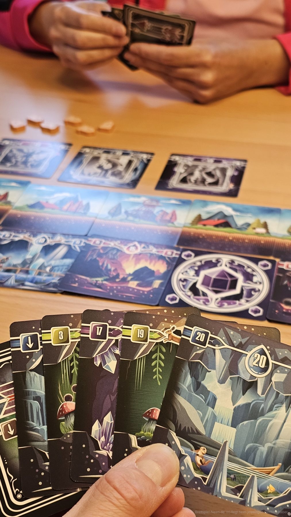 "Tranquility: The Descent" ist ein kooperatives Karten-Auslage-Spiel für 1–5 Personen ab 8 Jahren mit einer Spieldauer von etwa 45 Minuten, in dem wir fast ohne Kommunikation Karten in der richtigen Reihenfolge auslegen müssen.