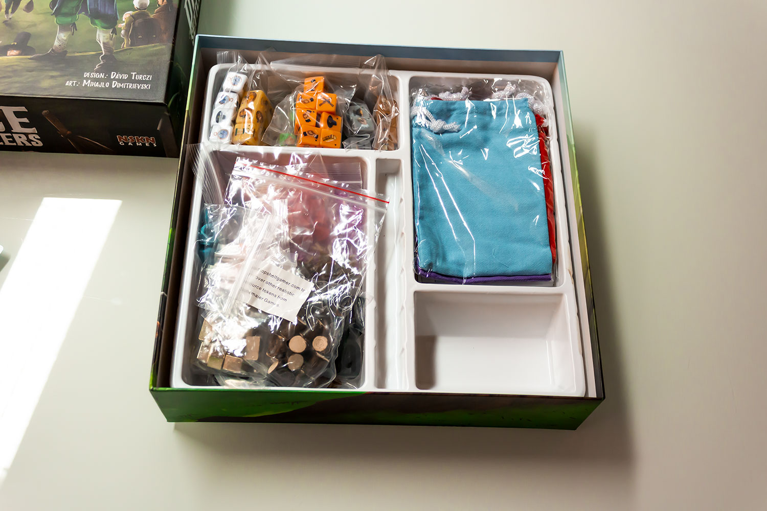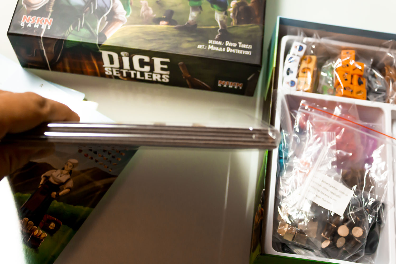 Wer Qualität mag, könnte mit „Dice Settlers“ vom Autoren David Turczi duchaus Spaß haben - anbei Bilder des Spielmaterials der Kickstarter Version. Der Schwerkraft Verlag hat eine deutsche Version Retail-Version des Spiels veröffentlicht. Das Spiel ist für 2-4 Spieler und 40-60 Minuten Spielzeit bieten.