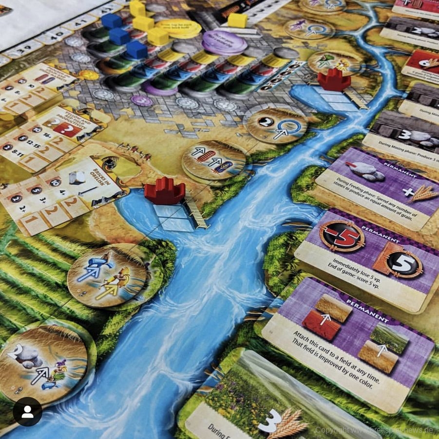 Nach Abschluss der Platzierungsphase müssen die Arbeiter der Spieler (die von den Bauern getrennt sind) mit dem auf den Feldern produzierten Getreide versorgt werden. Die Produktion jedes Feldes basiert auf den Überschwemmungen des Nils, so dass einige Felder möglicherweise nicht in jeder Runde Getreide liefern. Wenn ein Spieler nicht genügend Getreide für alle seine Arbeiter hat, muss er es mit Siegpunkten kaufen. Danach werden Steine aus den eigenen Steinbrüchen entgegengenommen und zusammen mit den Arbeitern zum Bau der Denkmäler verwendet (falls das Recht dazu früher vorbehalten war).