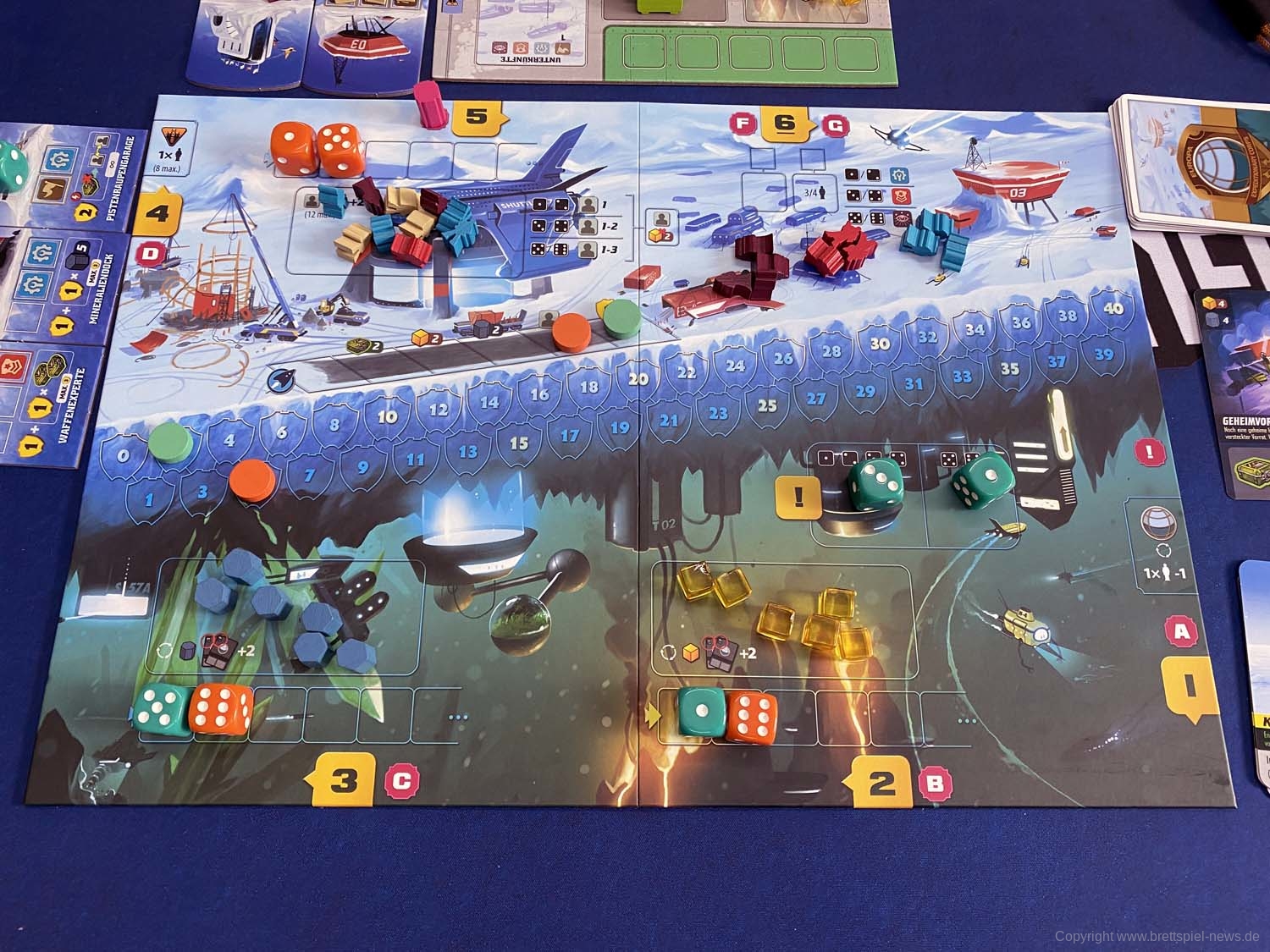 Wir haben eine kleine Basis auf Europa, dem gefrorenen Mond Jupiters, errichtet. Jahrzehntelange Anstrengungen haben die Luft atembar und die Temperaturen überlebbar gemacht - aber der wahre Schatz liegt tief im Ozean unter dicken Schichten aus Eis: Die See wird von vulkanischen Aktivitäten erwärmt und ist voller Leben. Nahrung, Mineralien, Energie und Lebensraum warten auf jedes Team, das es zu ihnen schafft.