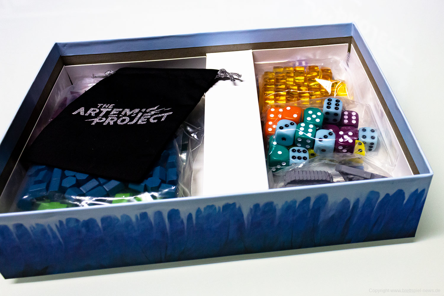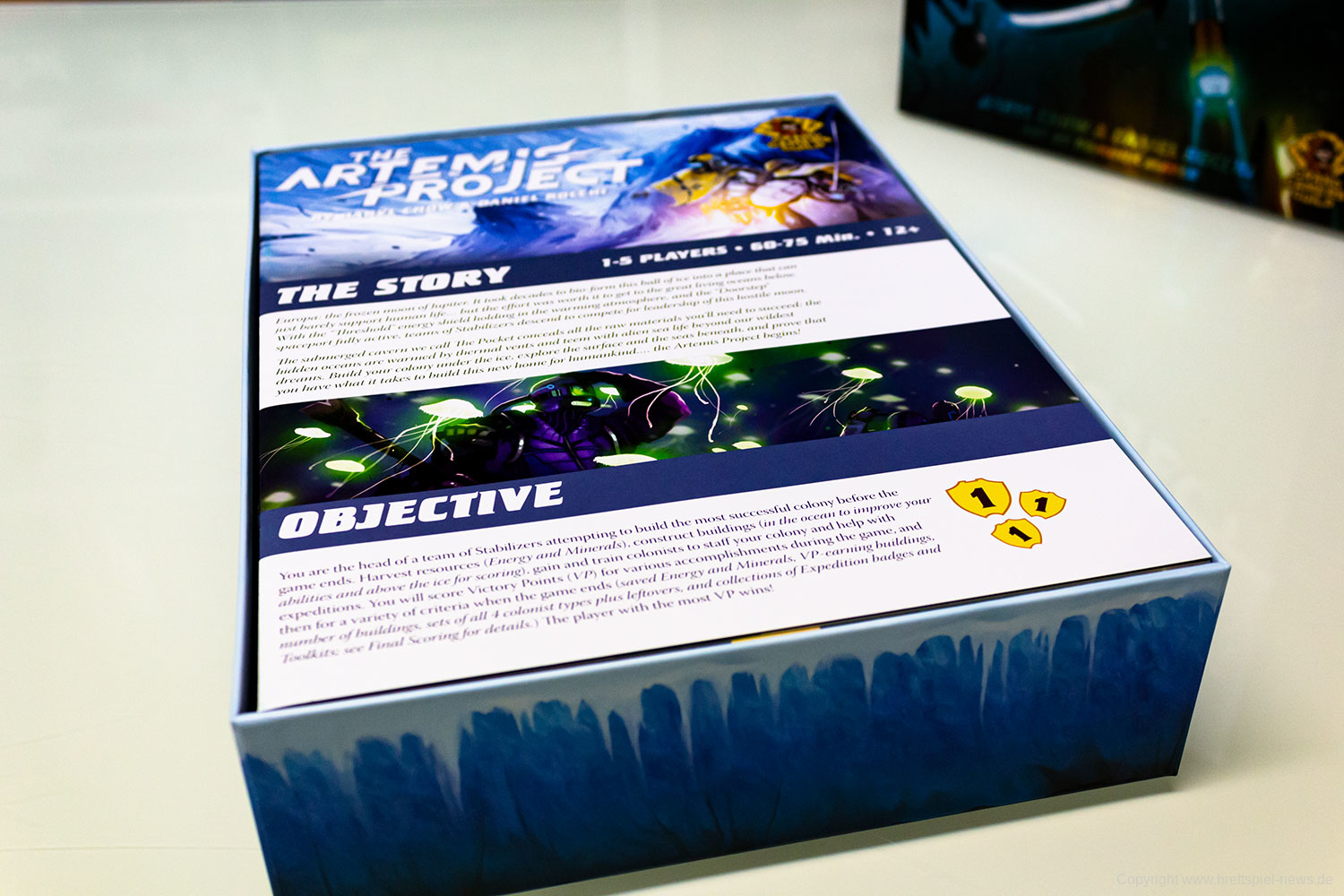 Mehr als 2.000 UnterstützerInnen finanzierten das Spiel The Artemis Project auf kickstaretr. Etwas später startete es in deutscher Fassung auch in der Spieleschmiede und wurde realisiert. Nun haben wir unser Kickstarter-Projekt erhalten und zeigen das Spielmaterial. Das Spiel ist für 1-5 Spieler ab 12 Jahren. Eine Partie dauert 60-75 Minuten. Es hat ein sehr hübsches Design und interessantes Setting!