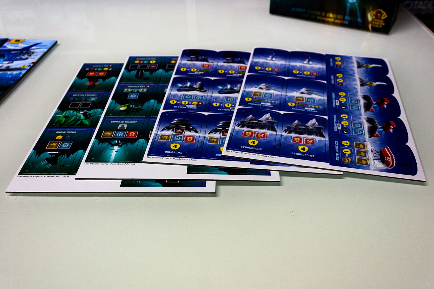 Daryl Chow und Daniel Rocchis Das Artemis-Projekt ist ein Kenner-Aufbauspiel für 1 bis 5 galaktische Siedler ab 12 Jahren. Die beiden Teile Europas werden von den beeindruckenden Illustrationen Dominik Mayers zum Leben erweckt. Wir, der neu gegründete Verlag Grimspire, haben uns sofort in das Spiel verliebt und wollen die deutsche Lokalisierung realisieren.