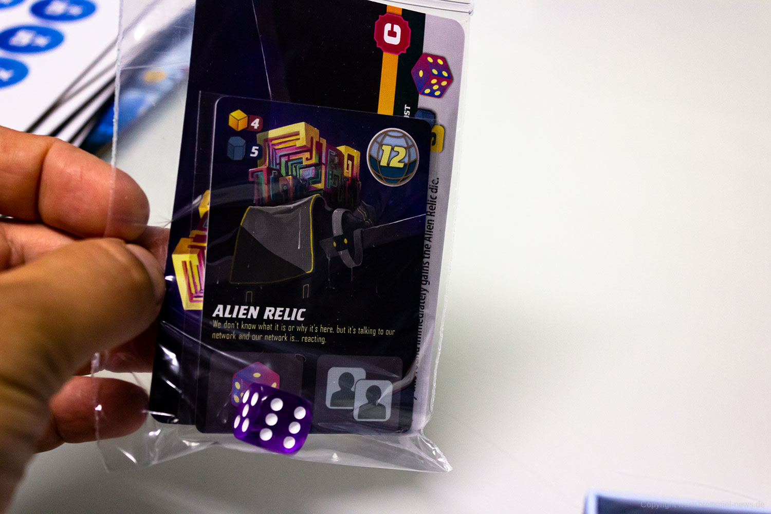Wir haben hart mit der Grand Gamers Guild verhandelt, um euch einige der eigentlich für englische Unterstützer exklusiven Materialien als Optionen anbieten zu können. Eine Option beinhaltet die beiden exklusiven Miniaturen, das Schneeraupenmobil und die koloniale Botschaft, die andere Option enthält die Alien-Relikte- und die Direktive-Karten sowie einen zusätzlichen, besonders starken Würfel.