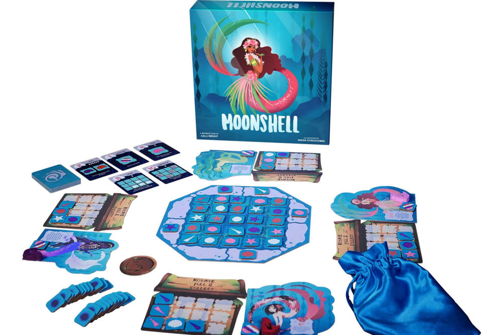 Das zugängliche Puzzlespiel MOONSHELL kann auf KICKSTARTER unterstützt werden. In dem Spiel von Calli Wright mit Illustrationen von Nikkie Stinchcombe übernehmen ein bis vier Spieler:innen ab acht Jahren die Rollen von Meerjungfrauen oder einem Meerjungmann und sammeln unterschiedliche Muscheln oder Seesterne in der eigenen Schatztruhe. Um Punkte zu erhalten, müssen die Muscheln und Seesterne in bestimmten Mustern angeordnet werden. Jeder Charakter im Spiel hat außerdem eine eigene Fähigkeit.