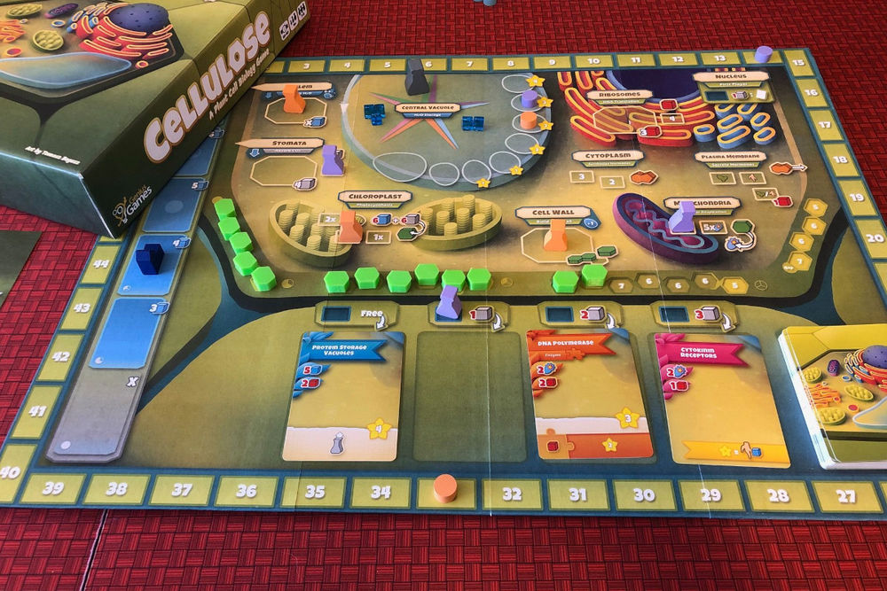 GENIUS GAMES (GENOTYPE, SUBATOMIC) haben auf KICKSTARTER eine neue Kampagne gestartet. CELLULOSE ist ein Engine-Building und Worker-Placement Spiel für ein bis fünf Spieler:innen von John Coveyou (CYTOSIS, PERIODIC) und Steve Schlepphorst (MATH RUSH). Thomasz Bogusz (CYTOSIS, GENOTYPE) hat das Spiel illustriert und eine Partie soll ungefähr 45 - 90 Minuten dauern. CELLULOSE ist der Nachfolger von CYTOSIS und die Spieler:innen versuchen Punkte durch den Bau von Zellwänden und die Produktion von Carbohydraten zu sammeln.