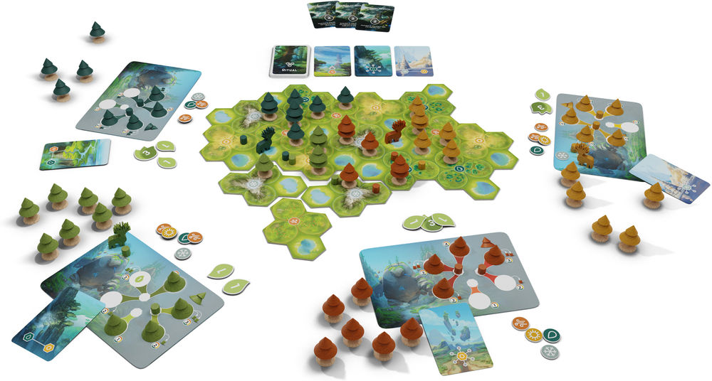 In FORESTS OF PANGAIA baut ihr euren eigenen Wald auf und kämpft mit anderen Spielenden um Territorien. Strategische Entscheidungen sind auf dem Weg dorthin entscheidend. Werdet ihr euren Wald ruhig und isoliert halten oder mit anderen mischen, um die Vorteile der Vielfalt zu ernten?