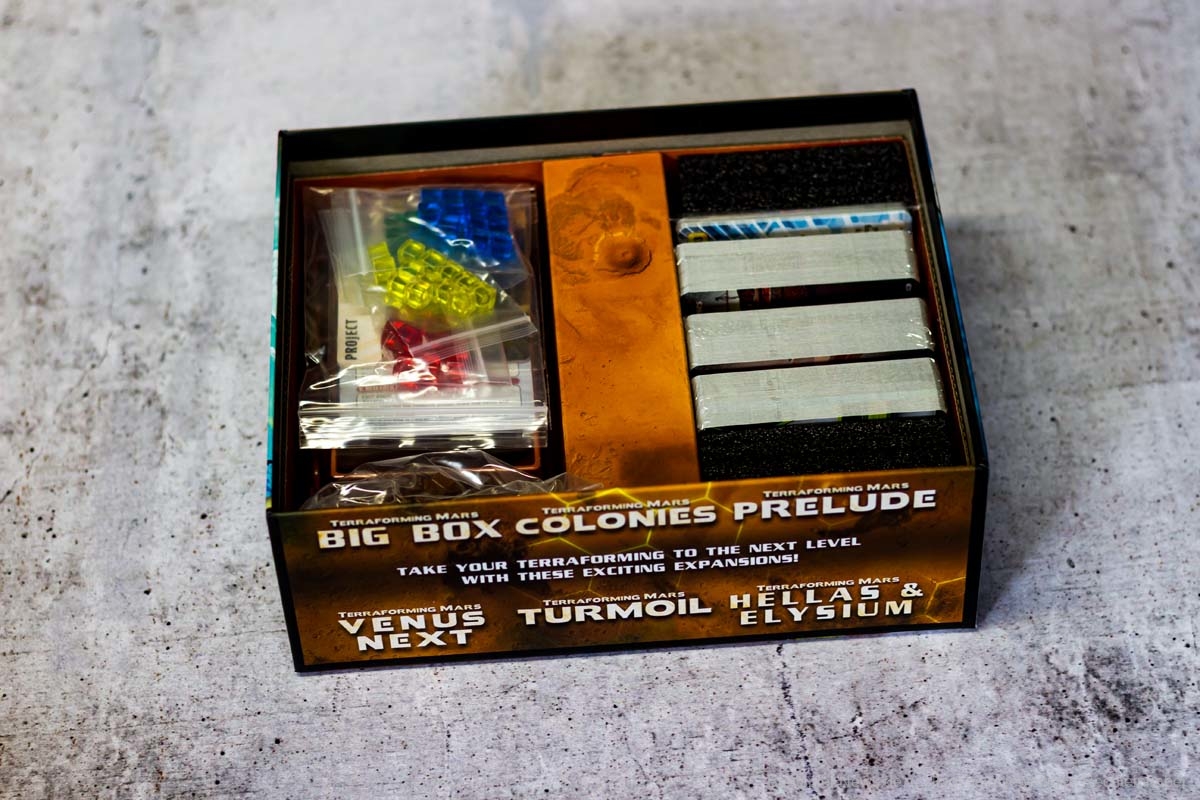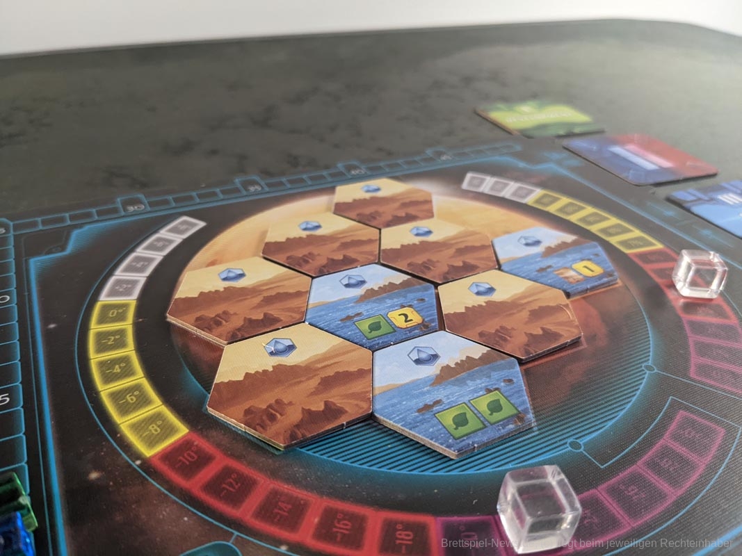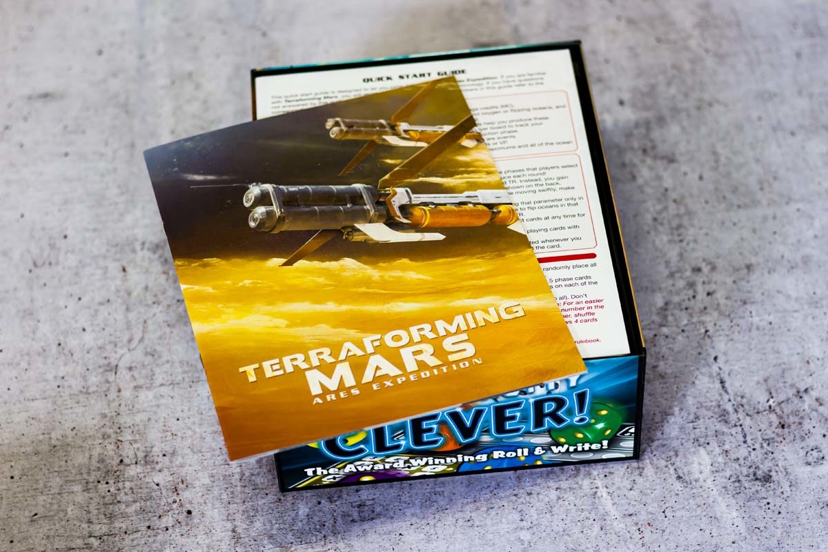 TERRAFORMING MARS erschien ursprünglich 2016. Darin übernehmen ein bis fünf Spielende die Rolle von unterschiedlichen Unternehmen, deren Aufgabe es ist, den Mars für eine Besiedlung zu terraformen. Dafür müssen sie die Temperatur, den Sauerstoffgehalt und die Ozeanbedeckung auf einen bestimmten Level heben. Das Spiel wurde 2017 zum KENNERSPIEL DES JAHRES nominiert und steht aktuell bei BoardGameGeek auf Platz vier der besten Spiele aller Zeiten.