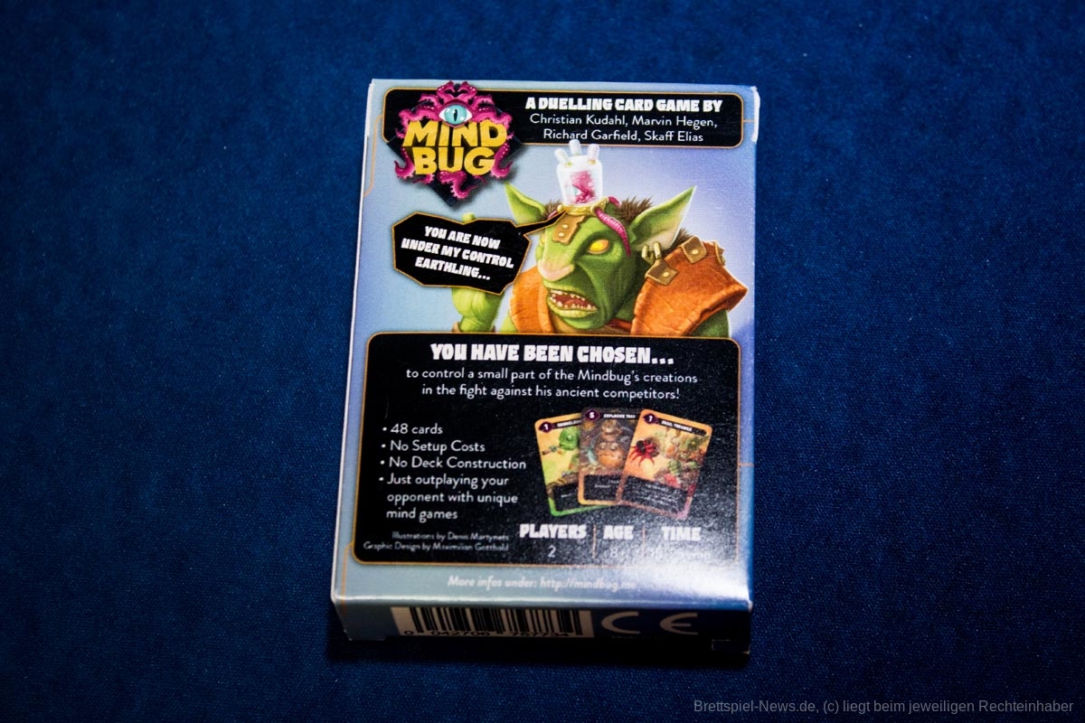 "Mindbug" war in Essen auf der SPIEL’21 als begrenzte Vorabversion verfügbar. Das kleine Kartenspiel stammt von Christian Kudal und Marvin Hegen und wurde von den Branchenveteranen Richard Garfield und Skaff Elias mitentwickelt. Es soll einfach zu lernen sein und trotzdem strategische Tiefe bieten.