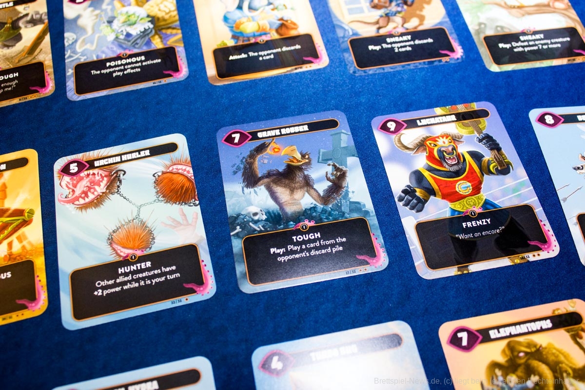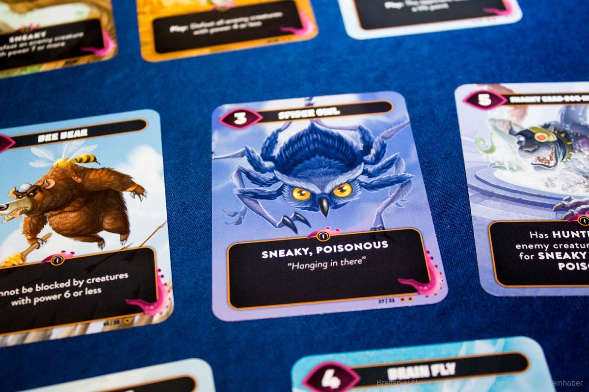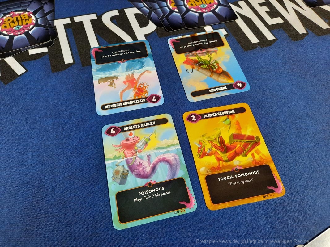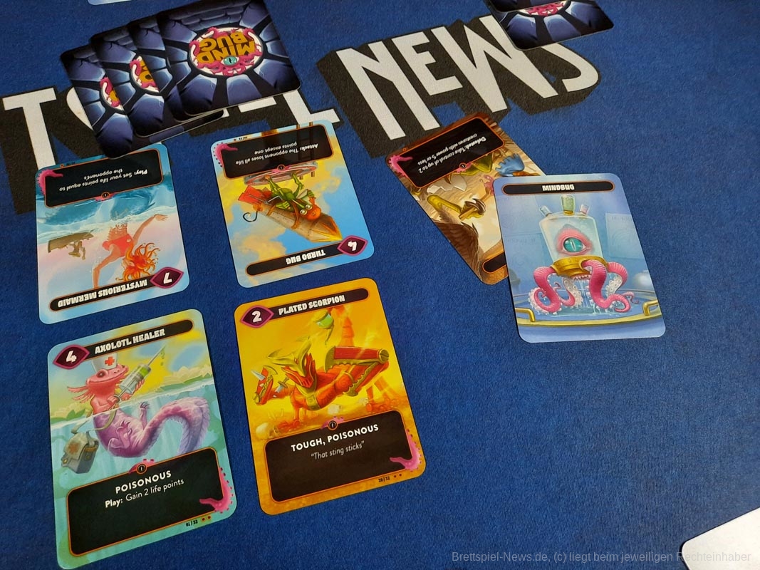 Bei Mindbug ist es nicht nötig, ein Deck zu bauen und es gibt auch keine Anlaufphase zum Sammeln von Ressourcen. Die Spieler und Spielerinnen verwenden ein einziges Deck und ziehen daraus, was auch bedeutet, dass es keinen unfairen Vorteil gibt. Es spielt also keine Rolle, wie groß die eigene Kartensammlung ist. Außerdem gibt es keine schwachen Karten. Jede einzelne Karte zählt und kann zum Sieg führen, wenn sie klug gespielt wird.