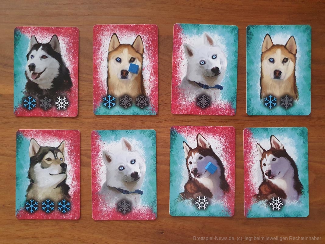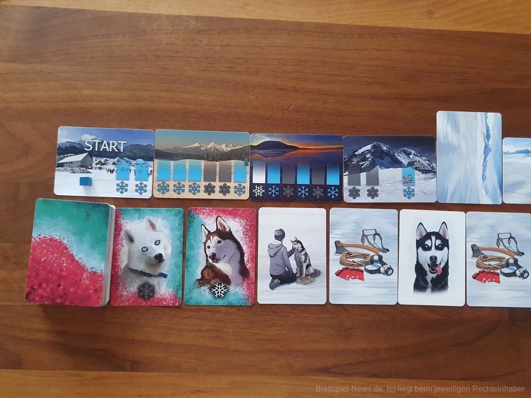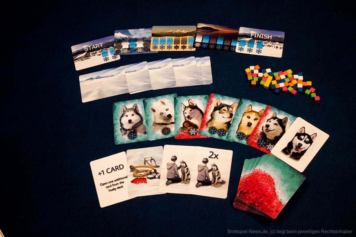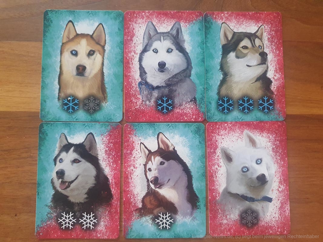 Die Spieler wählen die Schlittenhunde sorgfältig nach ihren Fähigkeiten aus. Diese bewegen sich über unwegsames Gelände und werden von den Spielerinnen und Spielern entsprechend ihres Charakters in ihrer Schlittenposition eingesetzt. Sie sammeln Ausrüstung und trainieren ihre Huskys. Und dann geht das Rennen los! Die Spieler und Spielerinnen verlassen sich auf die Fähigkeiten ihrer Huskys und die Vorbereitungen, die sie getroffen haben, eine Kombination aus Glück und Geschick, die sie als erste über die Ziellinie bringt.