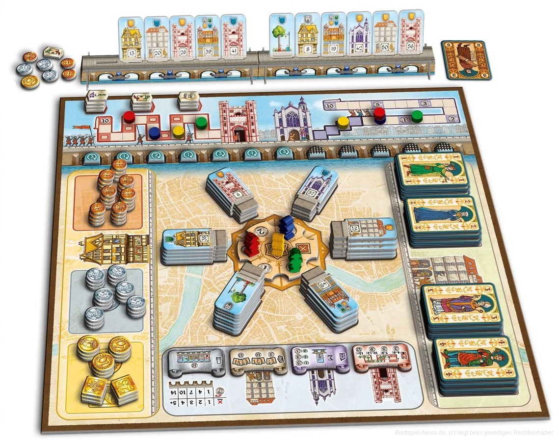„Old London Bridge“ ist das neue Spiel von Queen Games, das gerade via Kickstarter finanziert wird. Das gehobene Familien-Spiel wurde von Gabriele Bubola (Hats, Merchants of Dunhuang) und Leo Colovini (Inkognito, Cartagena) entwickelt. Es ist für 2-4 Personen ab 10 Jahren und hat eine Spielzeit von 45 Minuten.
