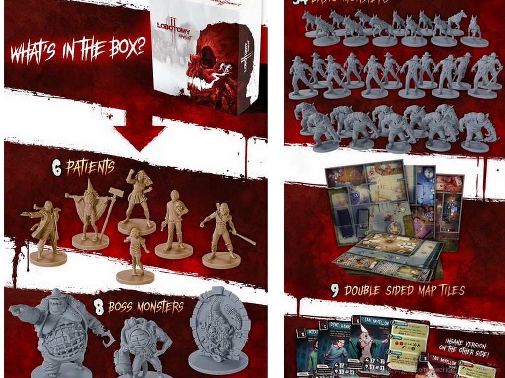 "Lobotomy 2 : Manhunt" schnürt in der Kampagne das zusammen, was viele moderne Crowndfunding-Projekte bieten: ein vollständig kooperatives "Asylum-Crawler" Erlebnis mit einer langen Kampagne, unzähligen Miniaturen und mehreren Erweiterungen.