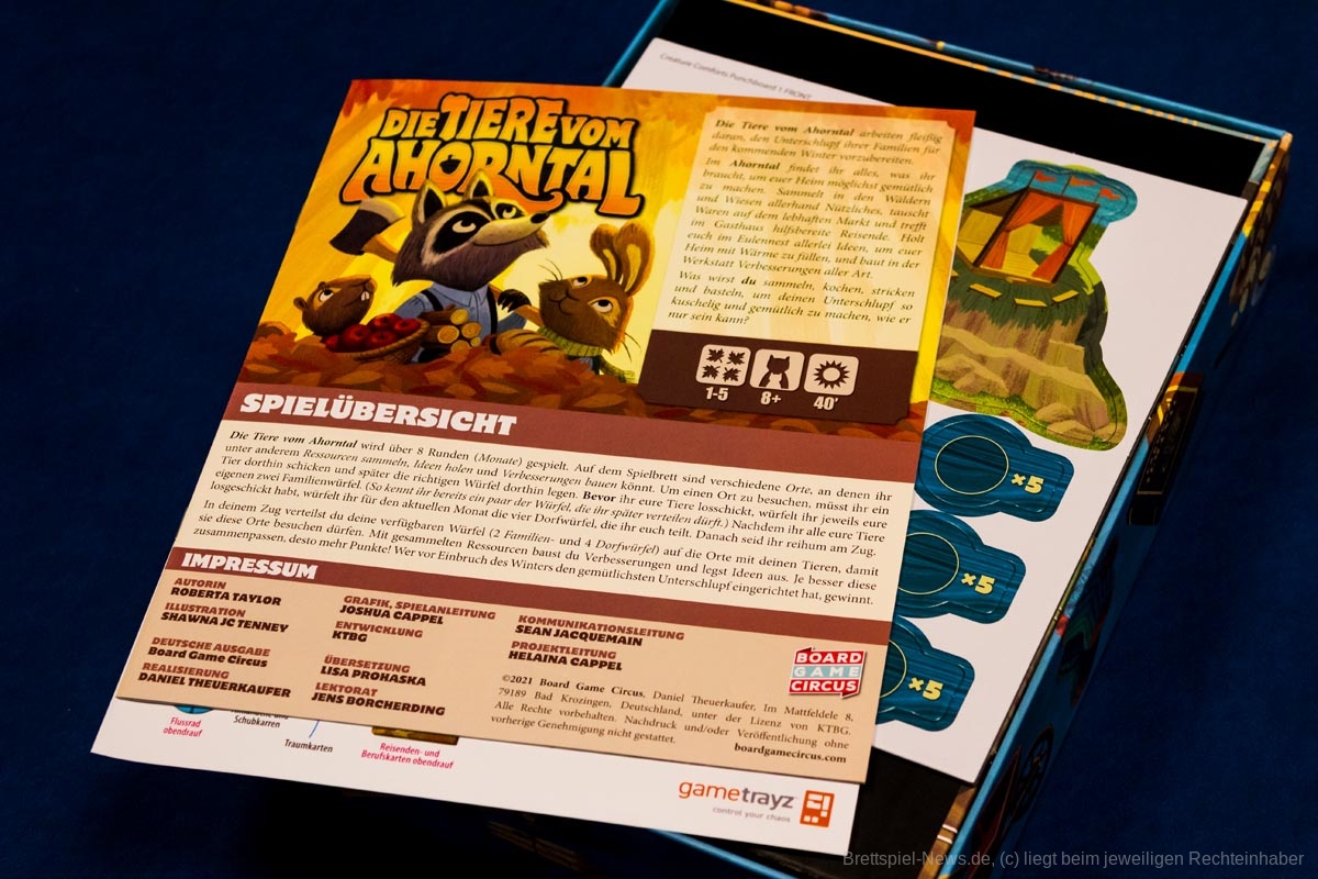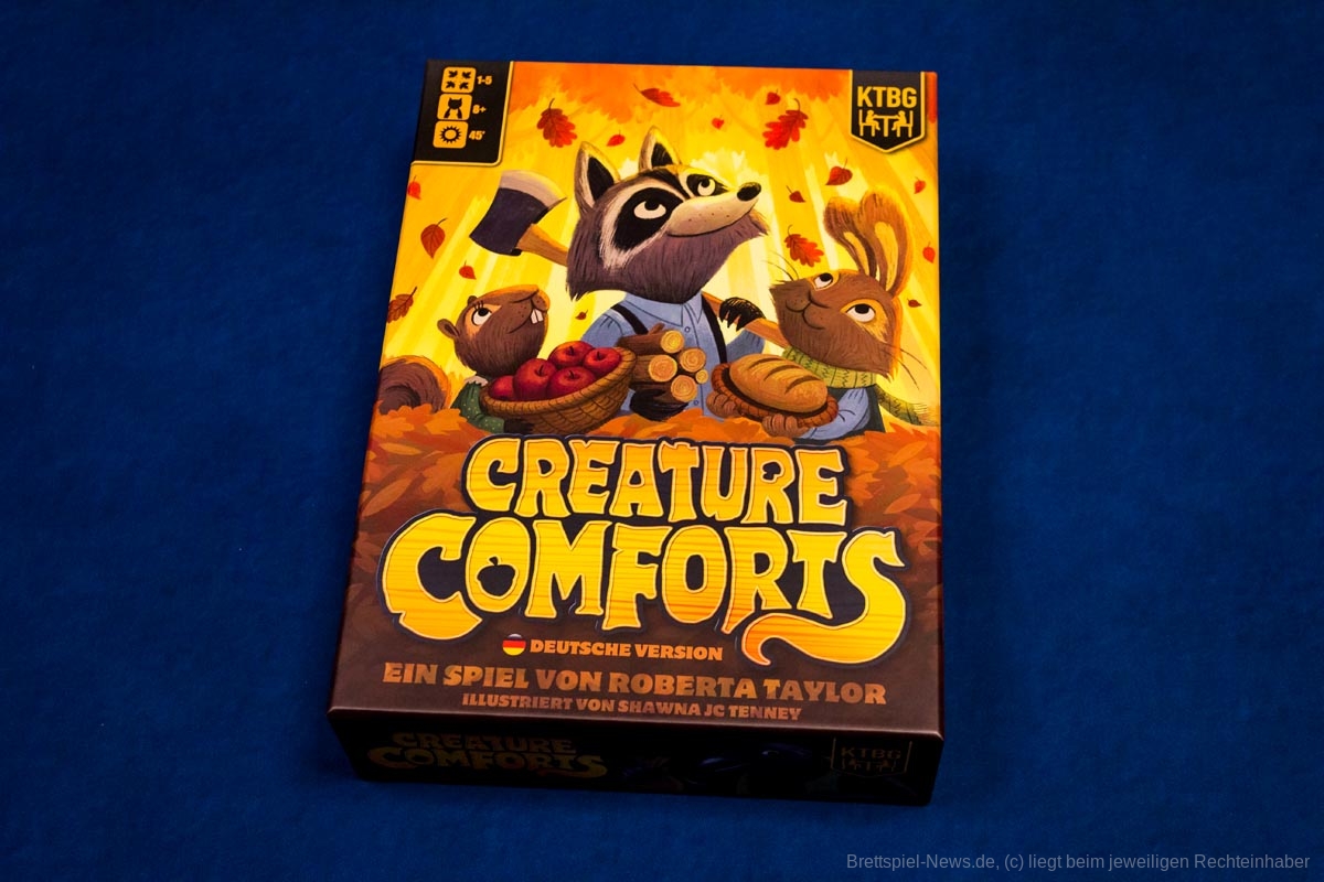 Mit „Creature Comforts“ ist ein von vielen Menschen erwartetes Spiel erschienen. In Deutschland ist es unter dem Titel „Die Tiere vom Ahorntal“ bei Board Game Circus veröffentlicht worden. In dem Spiel geht es darum, Wintervorräte zu sammeln, damit die eigene Familie möglichst gut über die kalte Jahreszeit kommt.