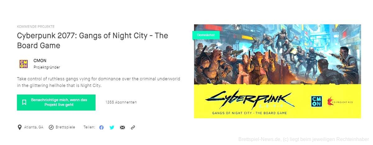 CMON hat eine Kickstarter-Kampagne für eine Brettspielumsetzung des Videospiels „Cyberpunk 2077“ angekündigt. Der Verlag verspricht ein Strategiespiel mit Miniaturen, bei der Banden um die Kontrolle über eine Stadt kämpfen. Das Besondere dabei: Die Stadt ist auch ein lebendiger Teil des Spiels.