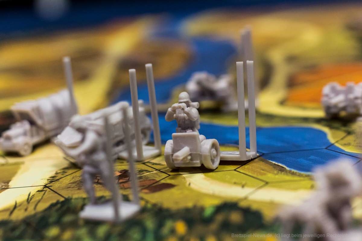 Die Miniaturen haben wie schon bei „Trench Club“ Steckleisten, auf denen runde Marker platziert werden können. So ist der Status der Einheiten mit einem Blick zu erfassen.