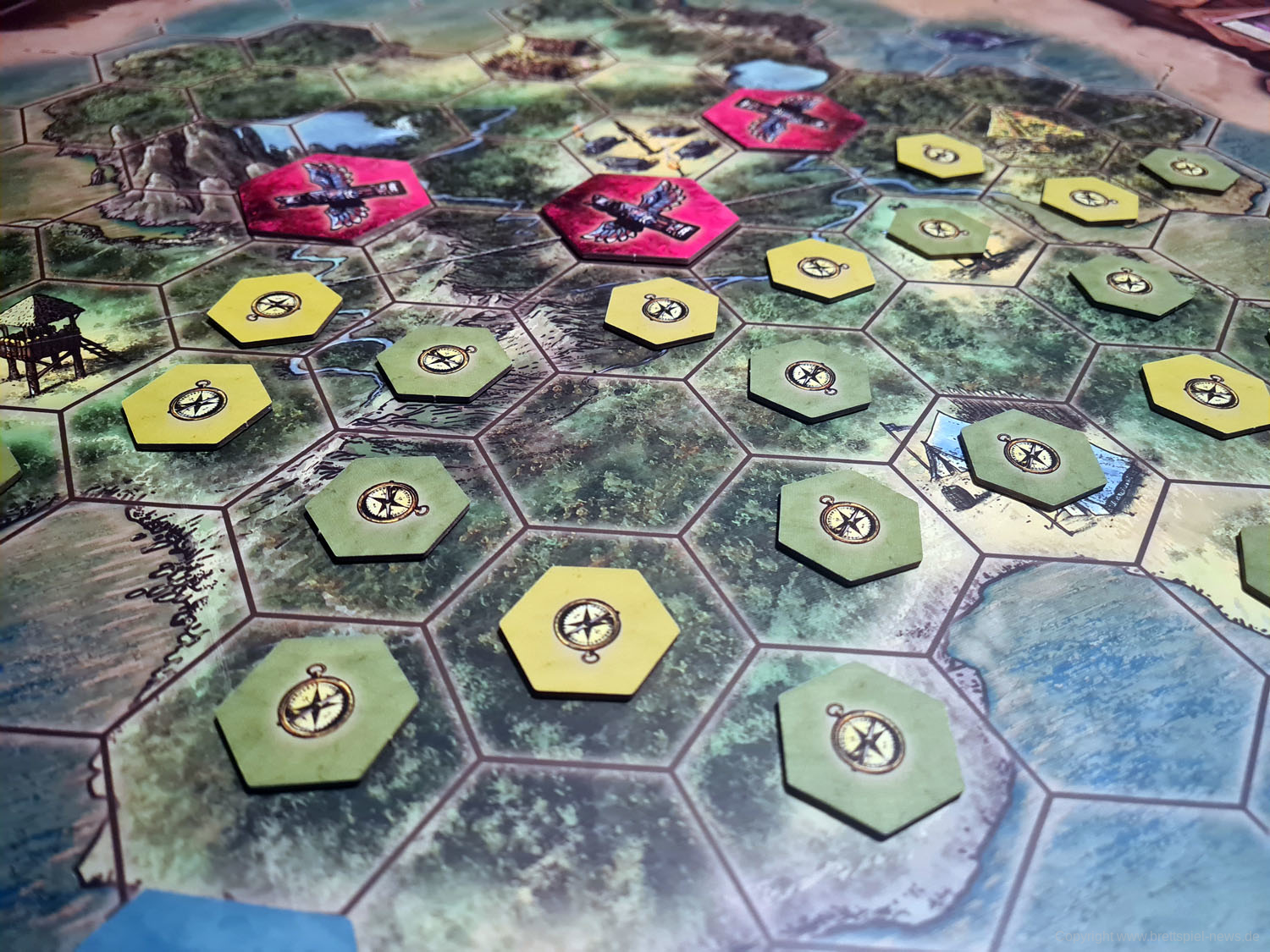 Letztendlich ist das Sammeln von Siegpunkten entscheidend, um das Spiel zu gewinnen, und sie können auf viele verschiedene Arten verdient werden, z.B. durch das Verfolgen der vorgegebenen Szenarioziele, die Konzentration auf Fortschrittsaufgaben und die Erfüllung von Missionen. Jetzt liegt es an Ihnen, eine Strategie zu entwickeln und mutig Ihre Expedition in die unbekannten Regionen der Inseln des Terrors zu führen.
