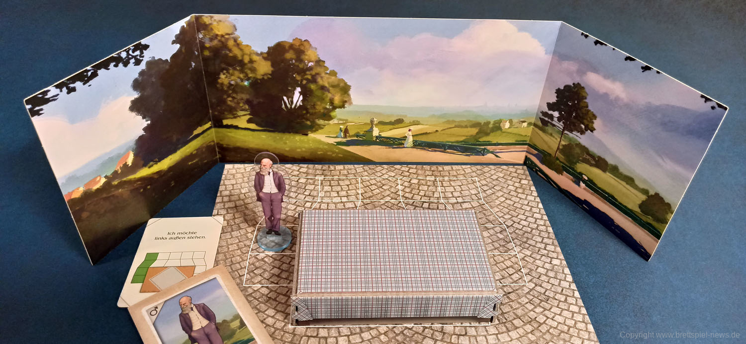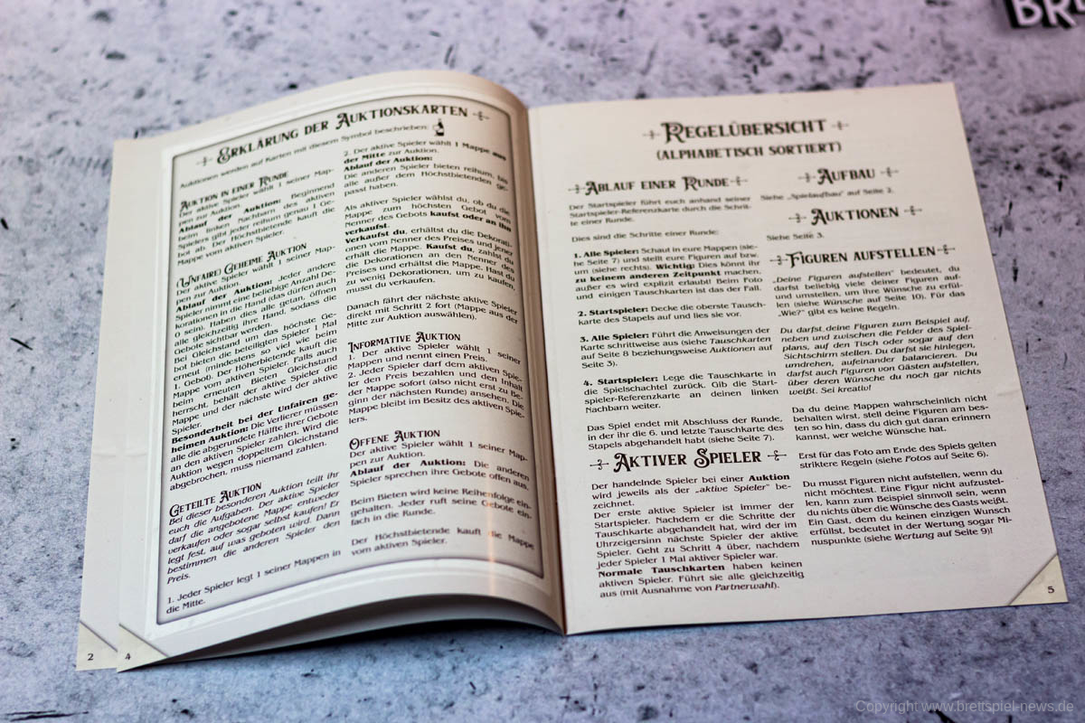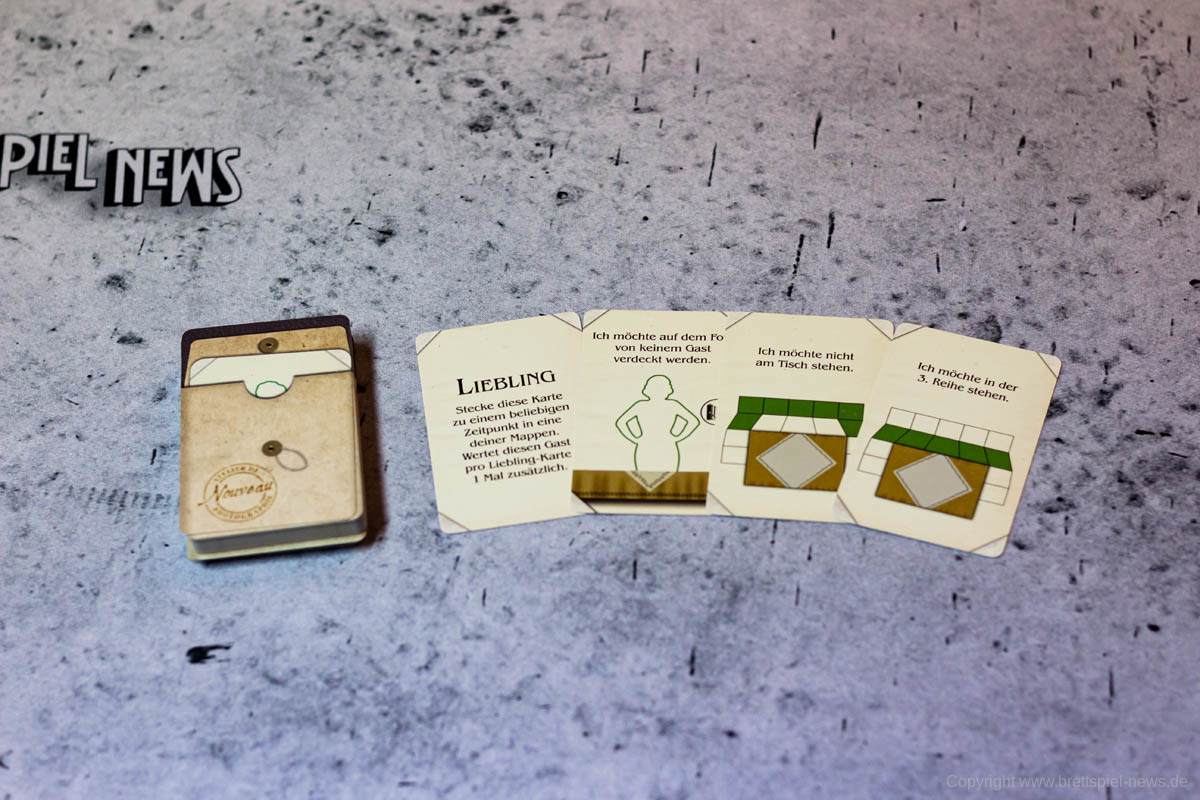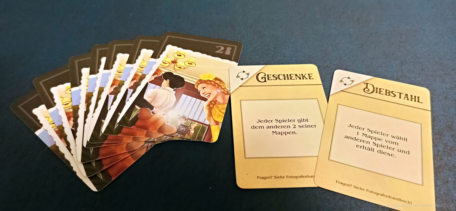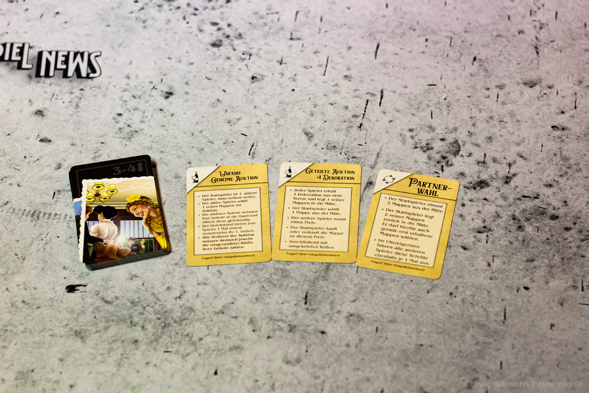 Eben diese Wünsche der Gäste sind in Mappen verborgen, die immer wieder zwischen den Spielern getauscht werden. Manche wollen im Vordergrund stehen, andere lieber im Hintergrund verschwinden, oder neben jemand bestimmten stehen - nur blöd, wenn dieser lieber woanders sein möchte! Da wird es schwer, alle glücklich zu machen ...
