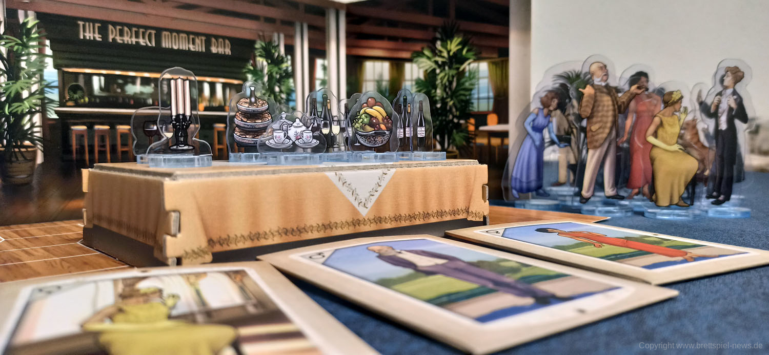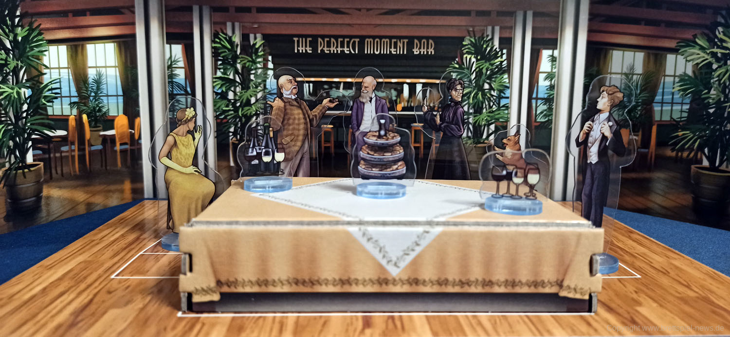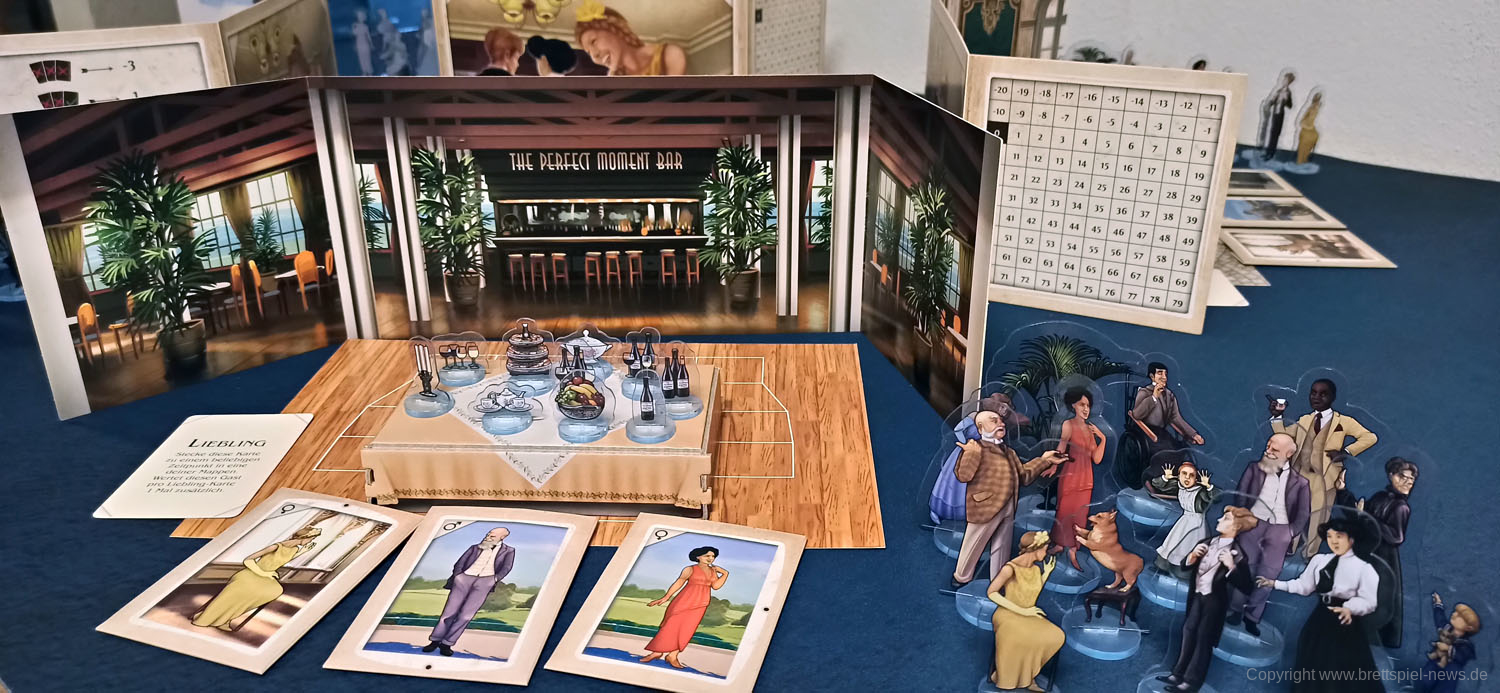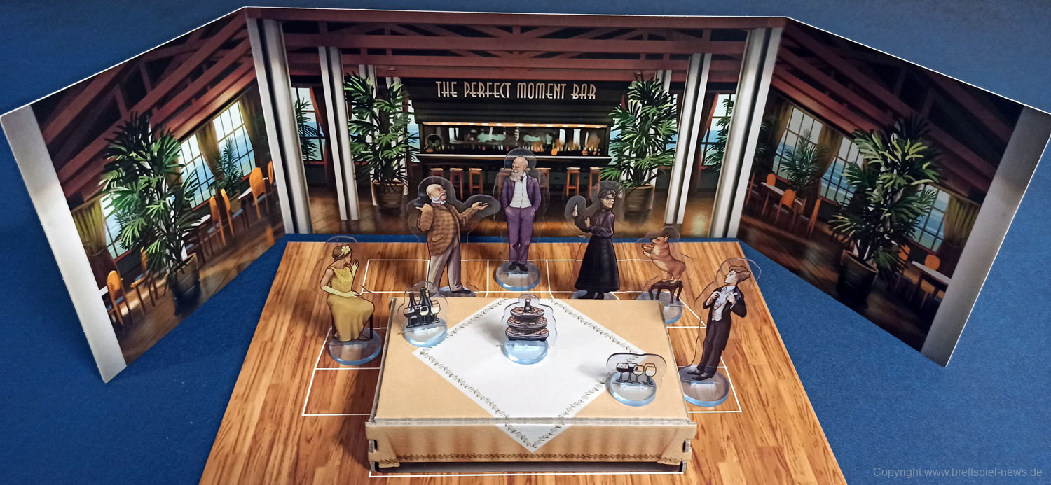 In Der perfekte Moment von Anthony Nouveau bist du einer von 2 bis 4 Fotografen (mit Erweiterung bis zu 6) und tauschst dich mit den anderen über die Vorlieben der Gäste aus. Finde heraus, was sie sich wünschen. Platziere die Gäste dementsprechend in deinem Bild und knipse das perfekte Foto! Wer seinen Gästen die meisten Wünsche erfüllt, macht das schönste Foto und gewinnt das Spiel.