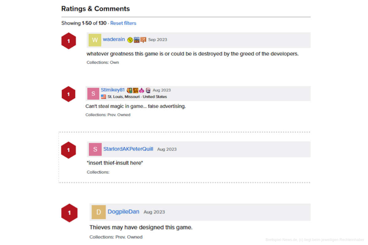 Während das Indiana Metro Police Department auf die Unschuldsvermutung verweist, geht die Brettspiel-Community derweil andere Wege: Aufgrund der gestiegenen Popularität war das Spiel „Castle Assault” zwischenzeitlich auf der BGG-Hotlist aufgetaucht. Um dem Eindruck, das Spiel sei aktuell sehr beliebt, entgegenzuwirken, verfassten viele User negative Bewertungen mit Kommentaren, die ihren Eindruck zur Sachlage deutlich zum Ausdruck brachten.