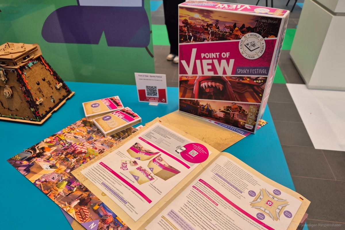 Vor Selbstbewusstsein strotzte auch einige der Brettspielverlage. Nachdem das Spielwarenunternehmen HABA, das überwiegend für Holzspielzeug und seine charakteristischen Kinderspiele mit gelber Brettspielschachtel bekannt ist, im Jahr 2023 Involvenz anmelden musste, präsentierte sich das oberfränkische Unternehmen nach teilweise schmerzlichen Umstrukturierungen nun neu aufgestellt. Die erwachsene Zielgruppe soll nun mehr erschlossen werden, ohne die treuen Kunden der gelben Kinderspielschachtel zu vernachlässigen. Stolz präsentiere HABA bereits auf der SPIEL 2024 in Essen sein Rebranding der erwachsenen Familienspiele. Weg von dem gelben Rahmen auf der Schachtel, hin zu einem lediglich dezenten HABA-Logo in der Ecke. Weniger ist manchmal mehr. Der Messeerfolg von „Point of View“, einem kooperativen Deduktions-/Rätselspiel gab ihnen recht. Um so mutiger ist nun der Schritt den zweiten Teil „Point of View - Spooky Festival“ explizit für Spieler ab 12 Jahren herrauszubringen. Das Thema ist hier Programm und lässt 2-8 Personen in 60 bis 120 Minuten einen gruseligen Jahrmarkt in mehreren Fällen erkunden. Pünktlich zur Spielwarenmesse ist der Ableger „Spooky Festival“ im Onlineshop von HABA bereits verfügbar gewesen.