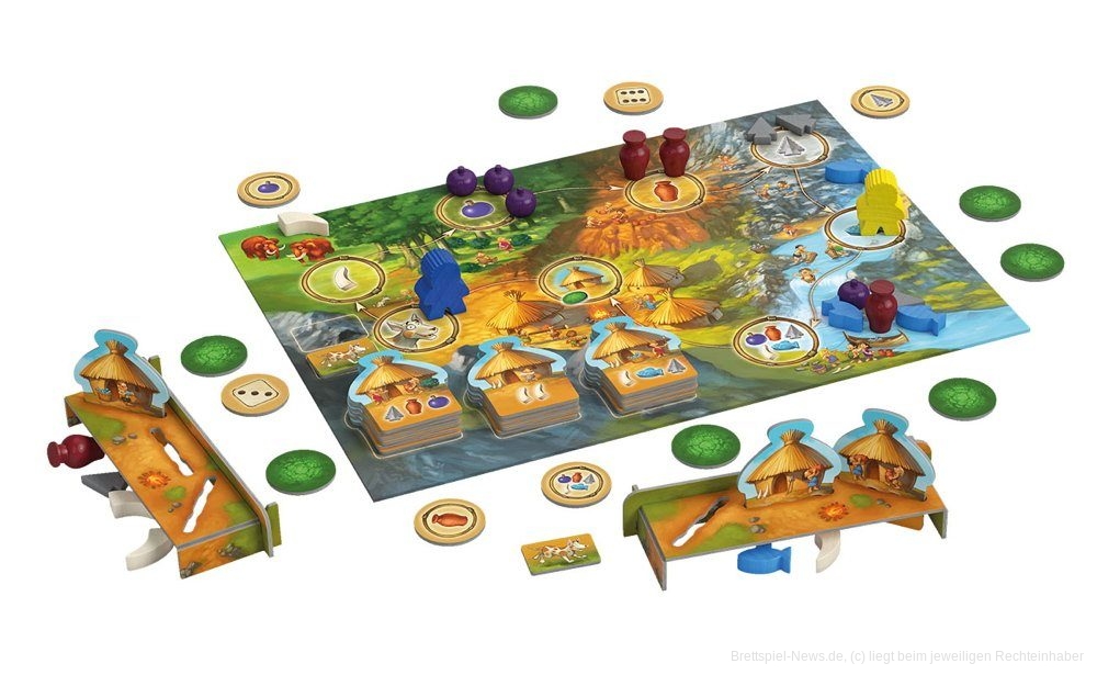 Die großen Spielfiguren, das Dorf als Aufsteller und die Marker zum Merken der Spielerfarbe sind gut auf die Bedürfnisse der Kinder angepasst.