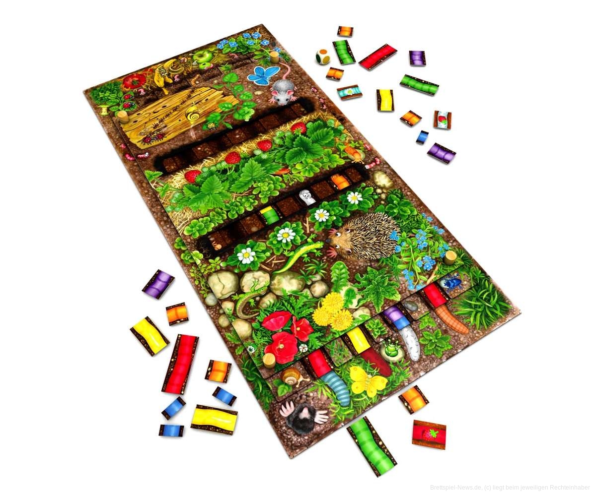Das nächste Spiel ist ebenfalls im Zoch-Verlag erschienen und ist der erste Preisträger, den der kleine Bruder sein Eigen nennen durfte. Mit einem Farbwürfel wird bestimmt, über welche Distanz der eigene Wurm wächst, um am Ende möglichst schnell aus der Erde zu schauen.