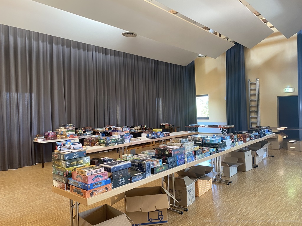 Am Samstag wurde der Flohmarkt auf der Bühne geöffnet. Über 800 Spiele von und für die Besucher lagen zum Verkauf bereit. Bei der Eröffnung ging es erstaunlich gesittet zu. Kein Schubsen und kein Drängeln war zu sehen, während einige Spiele den Besitzer wechselten. Für diesen Service fiel lediglich eine kleine Gebühr für verkaufte Spiele an, wobei ein Großteil dieses Gewinns von den BrettspielSuchties gespendet wird.