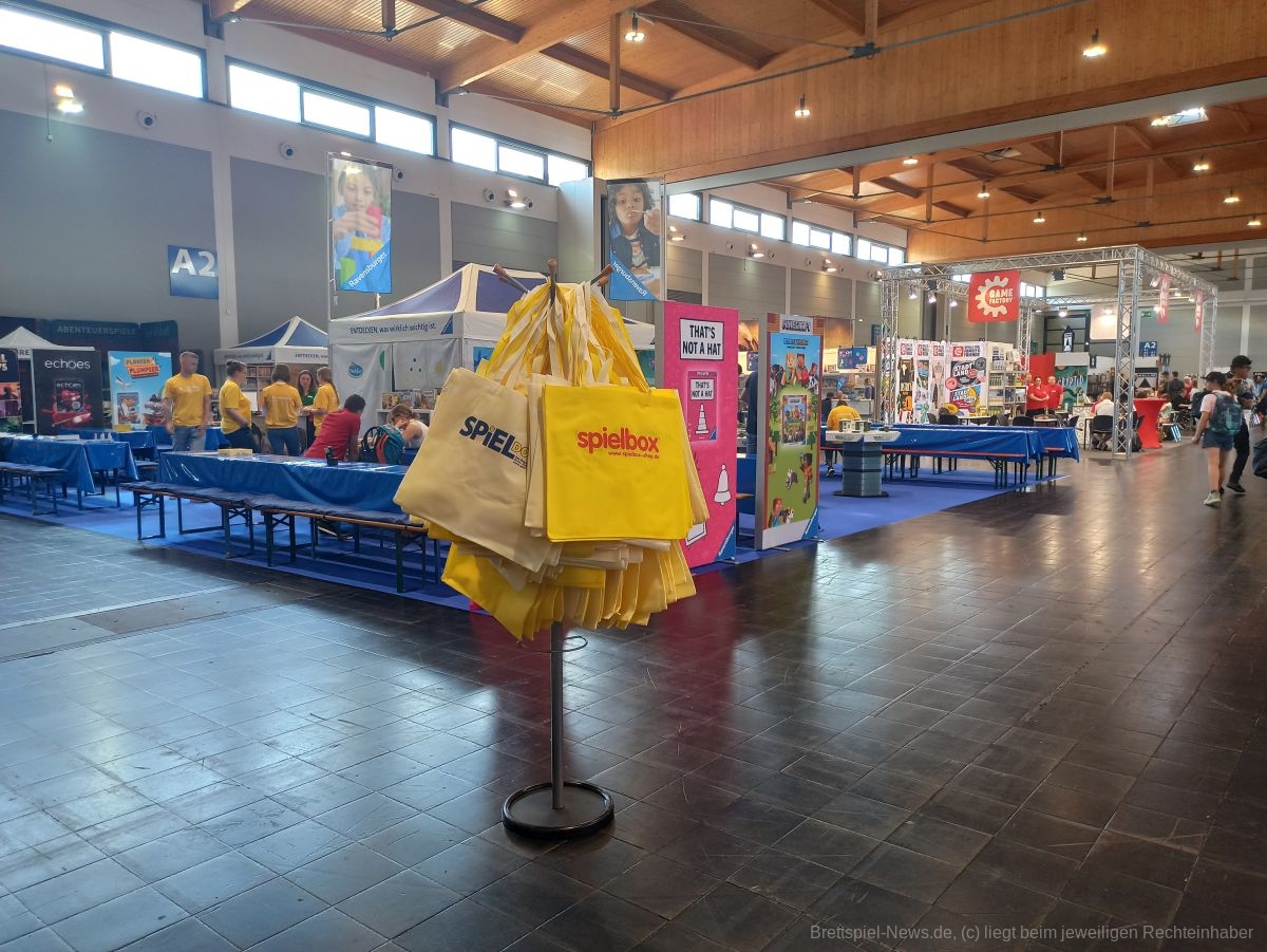 Im hinteren Bereich der Halle befindet sich ein großer kostenfreier Brettspiel-Verleih von Meeplebox und eine große Spielfläche mit 500 Sitzplätzen. Nette Spieleerklärenden stehen einem mit Regelerklärung, Rat und Tat zur Seite.
