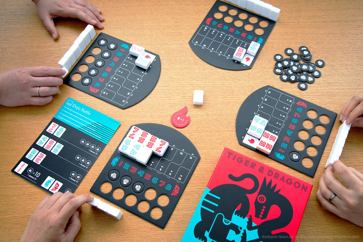 Das Spiel von Kunihito Nozawa ist im Japanischen Original bei Arclight Games erschienen. Das Design stammt von Atsushi Hashimoto, Jun Sasaki und Rie Komatsuzaki. „Tiger & Dragon“ basiert auf dem traditionellen „Goita“. Ihr schlüpft bei diesem Kachellegespiel in die Rolle von Martial-Arts Meisterinnen und übt eure Kräfte im Kung-Fu. Ziel des Spiels ist es, die nummerierten Spielsteine in der eigenen Hand schneller auszuspielen als alle anderen. Um deinen Gegner zu besiegen, musst du herausfinden, welche Fähigkeiten du zum Schluss und welche du während des Kampfes einsetzen solltest. Ihr Spielt also Plättchen sowohl als Angriffs als auch Abwehr -Aktionen. Das Spielgefühl soll sich je nach Anzahl an mitspielenden Personen verändern.