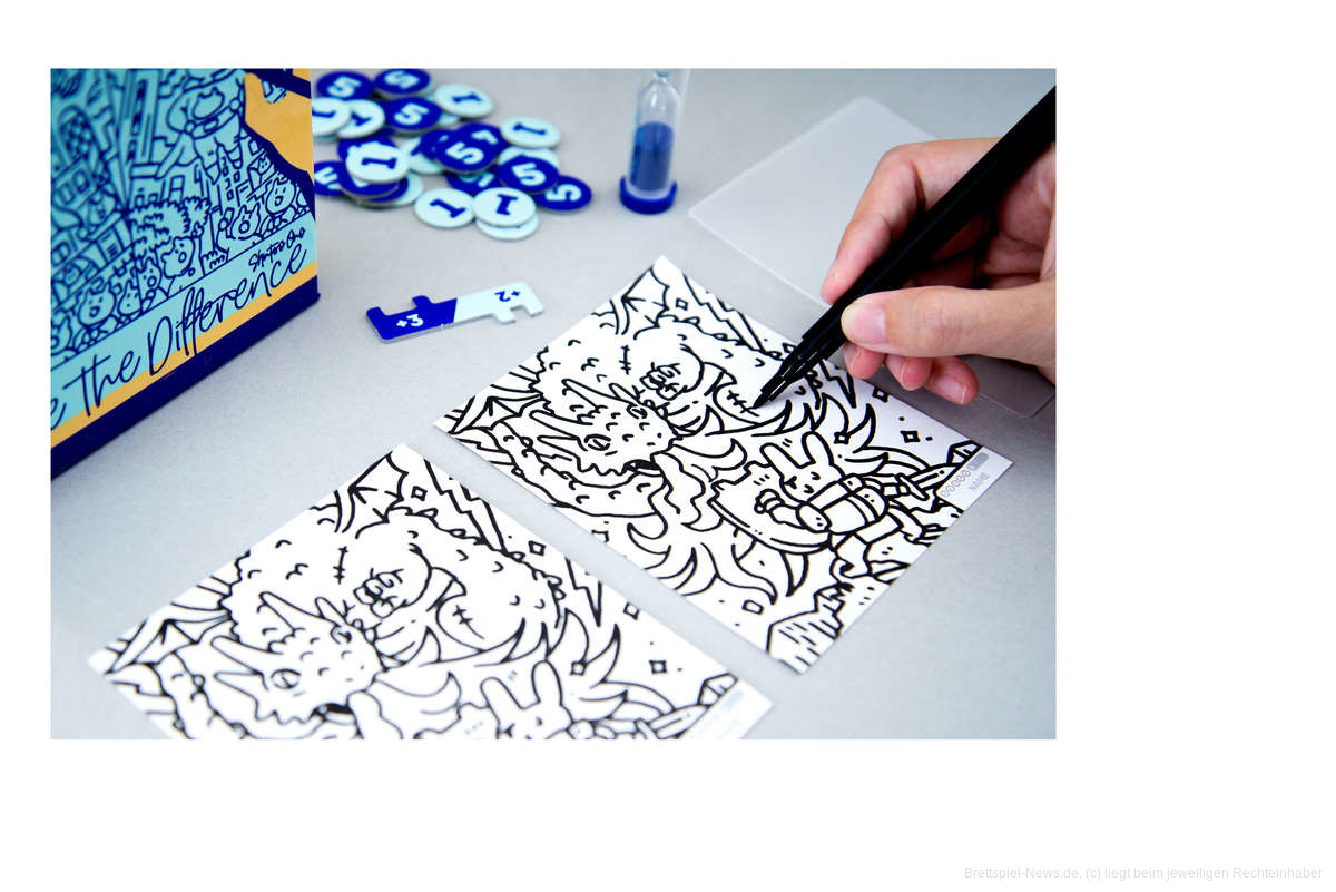 Dieses Spiel ist für 2 bis 5 Personen ab 7 Jahren. Die Spieldauer beträgt ungefähr 20 Minuten. Die Spielschachtel enthält neben den Markern und einer Sanduhr, 100 Blätter mit Illustrationen. Kosten soll „Make the Difference“ 25€.