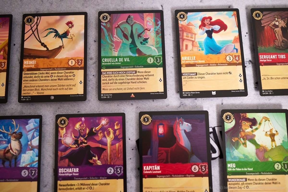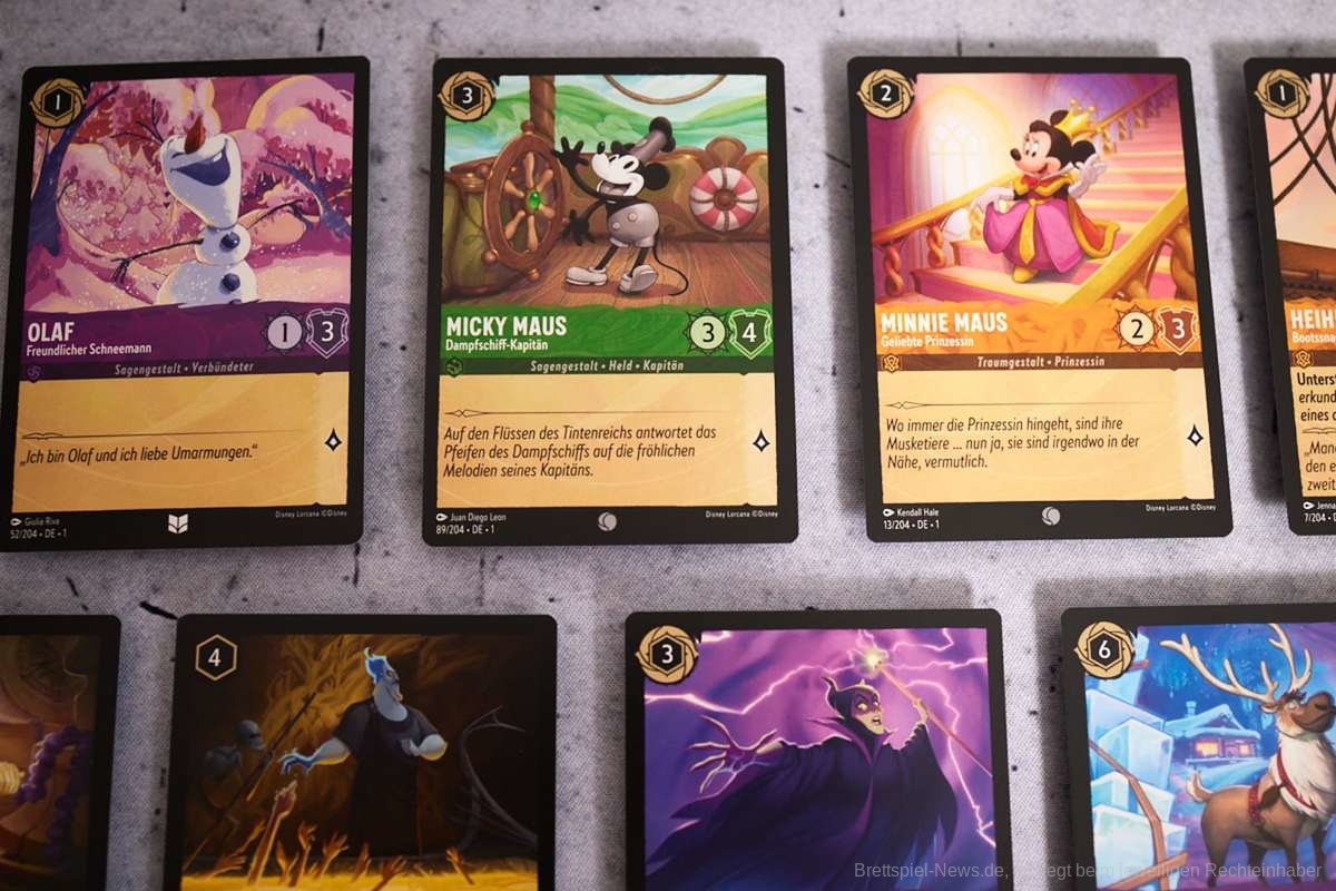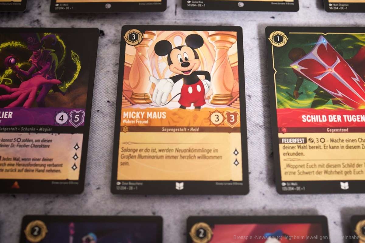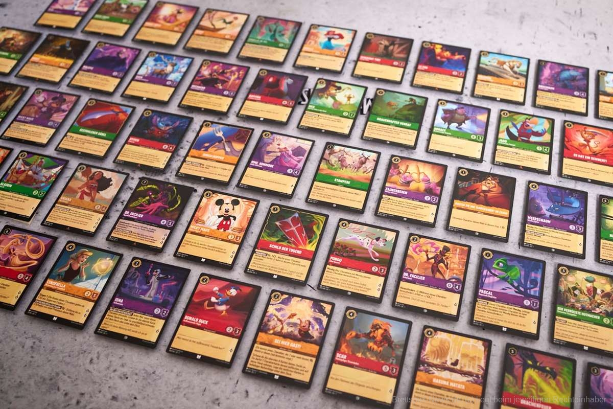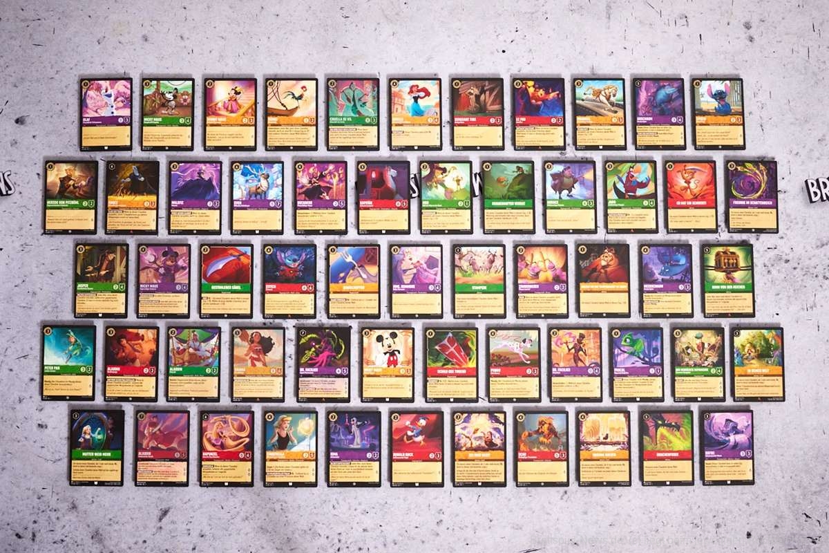 - Jeder Spieler hat ein Deck aus 60 Karten. Dieses Deck kann Schimmer bzw. Glimmer von Disney-Figuren, Gegenstände, Lieder und mehr enthalten. Wie diese Glimmer entstehen hört ihr in unserem Podcast.
