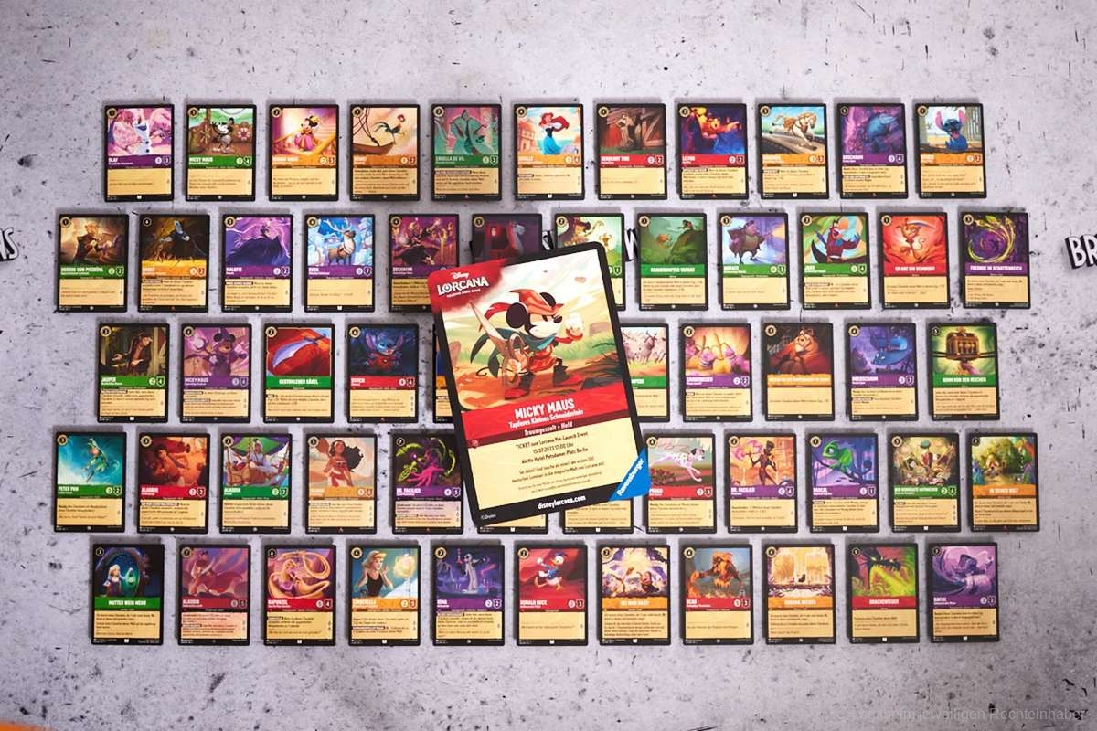 Wie ihr schon in unserem vor kurzem veröffentlichten Podcast hören konntet, war auch BSN zum Ravensburger Lorcana-Event in Berlin eingeladen. Daher erhielten wir erste Decks und exklusive Informationen vorab. Nun ist das Embargo gefallen und wir können Bilder des Spiels zeigen, kurz erklären wie es funktioniert und unseren Podcast veröffentlichen.